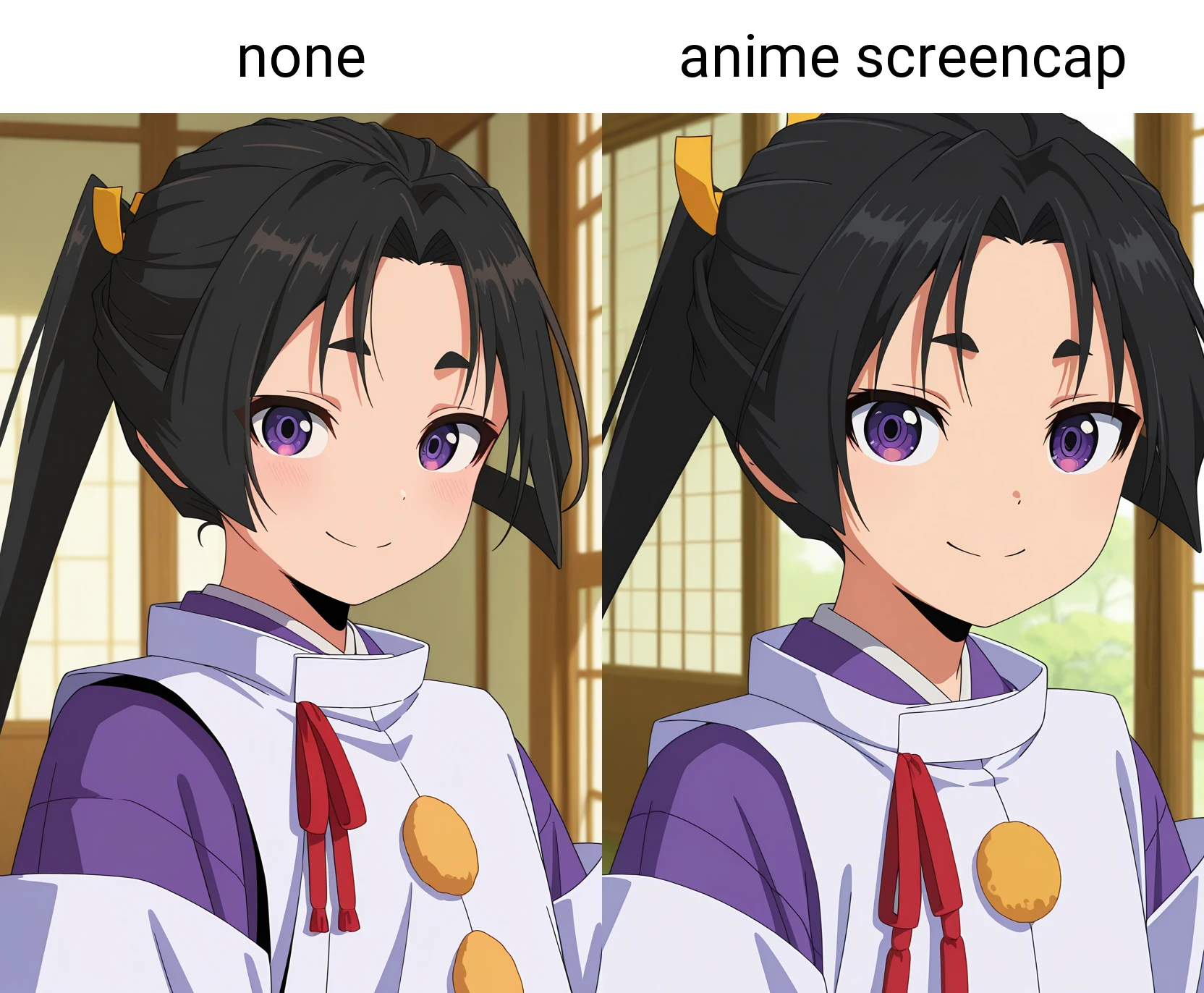プロンプトに"anime screencap"を使った方が、アニメの雰囲気に近くなります。
