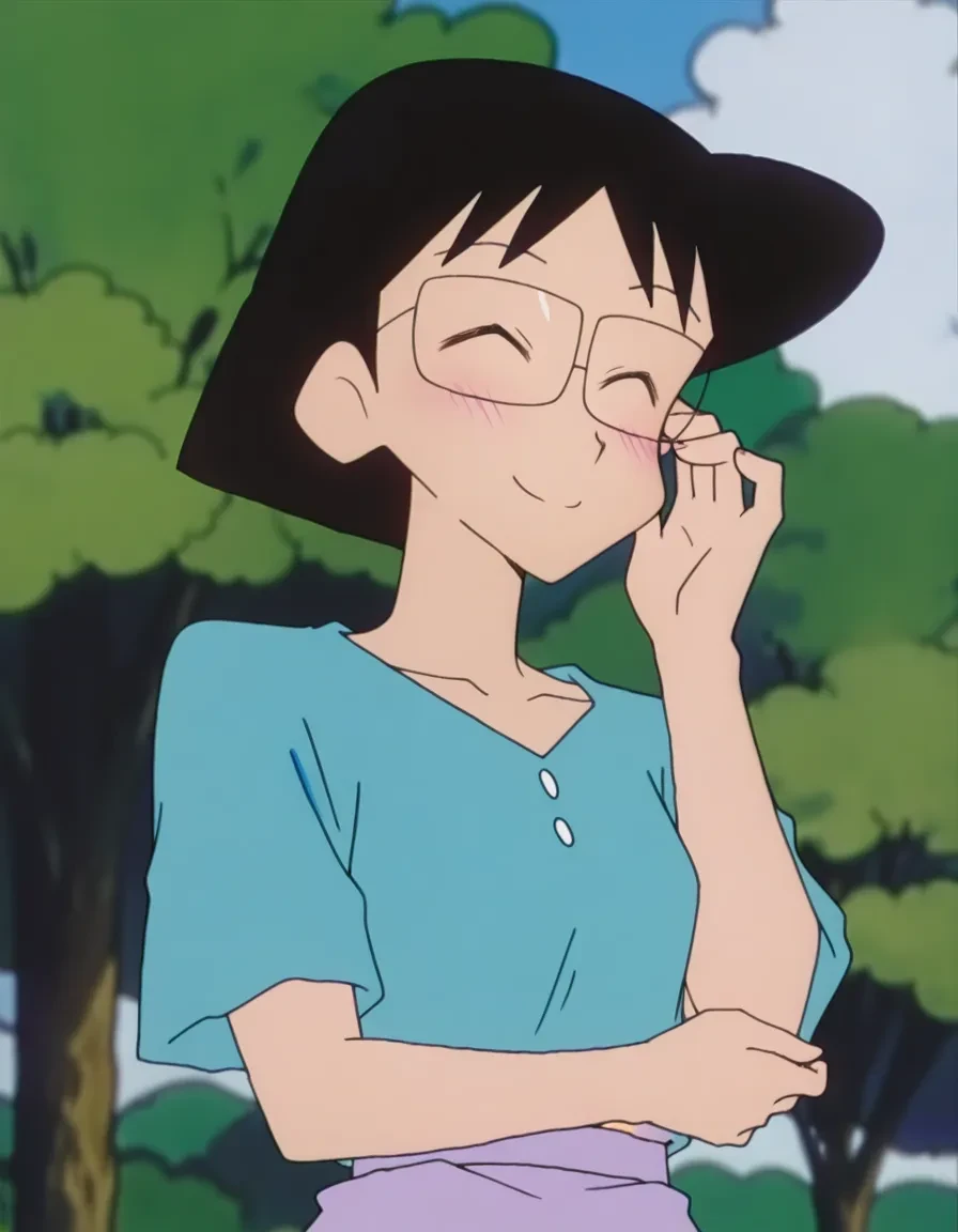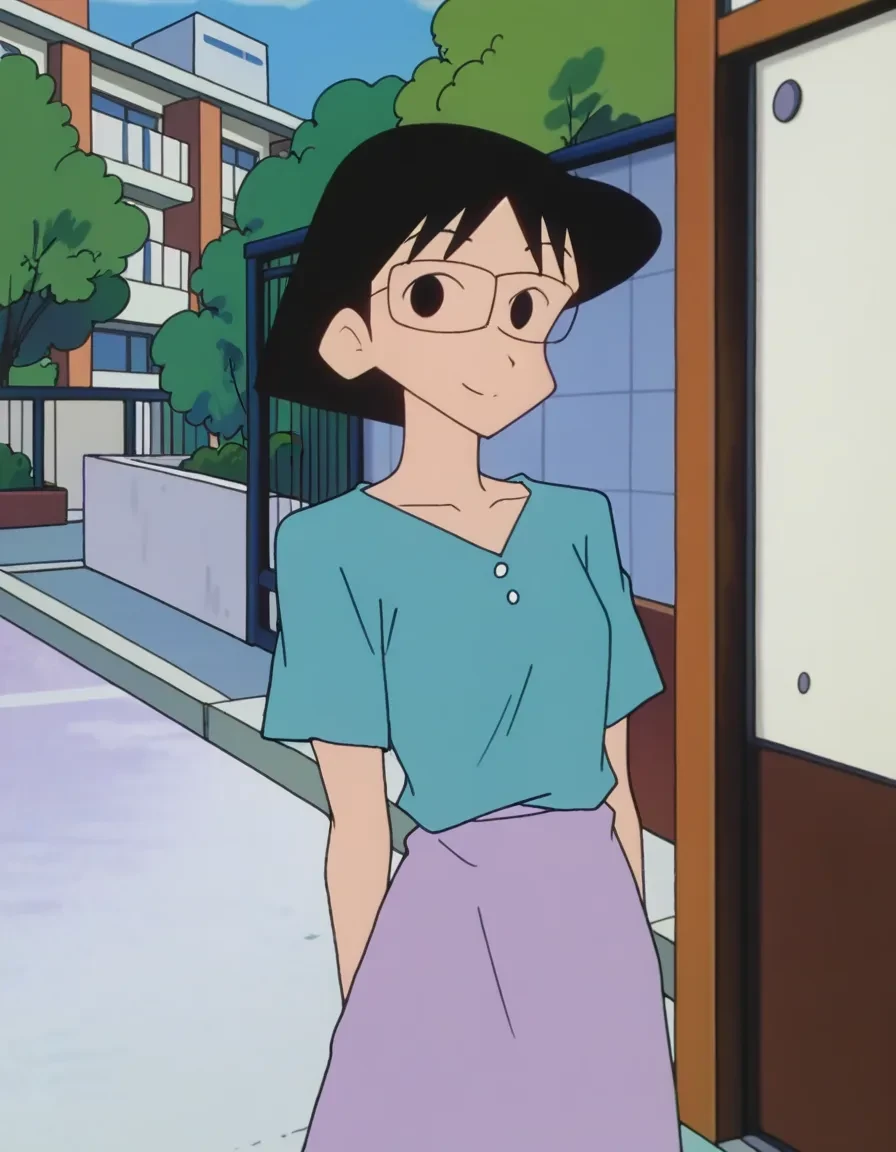glasses,aqua shirt,short sleeves,light purple skirt,long skirt,green sandals,