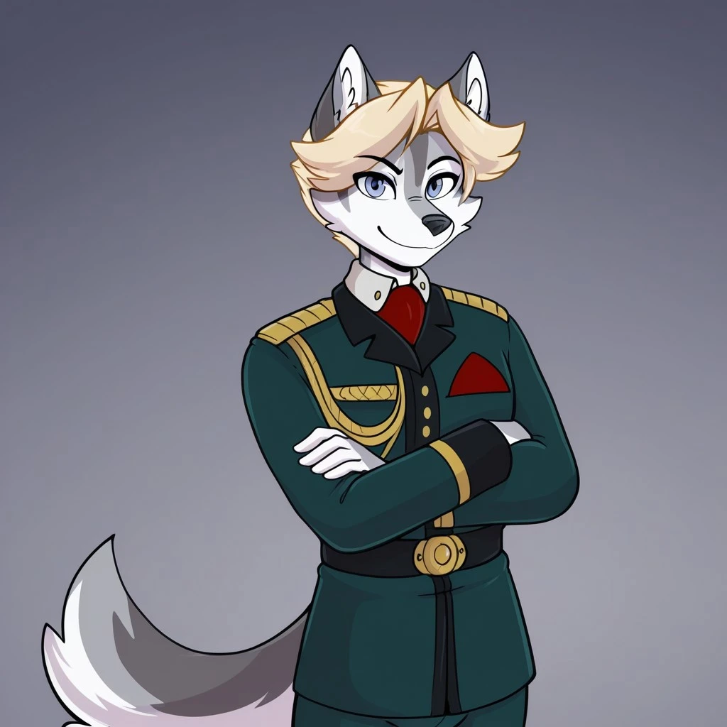 drayven_uq, 1boy, solo, furry, furry male, animal ears, blue eyes, blonde hair, male focus, wolf ears, short hair, tail, white fur, animal nose, wolf boy, snout, wolf tail, body fur,