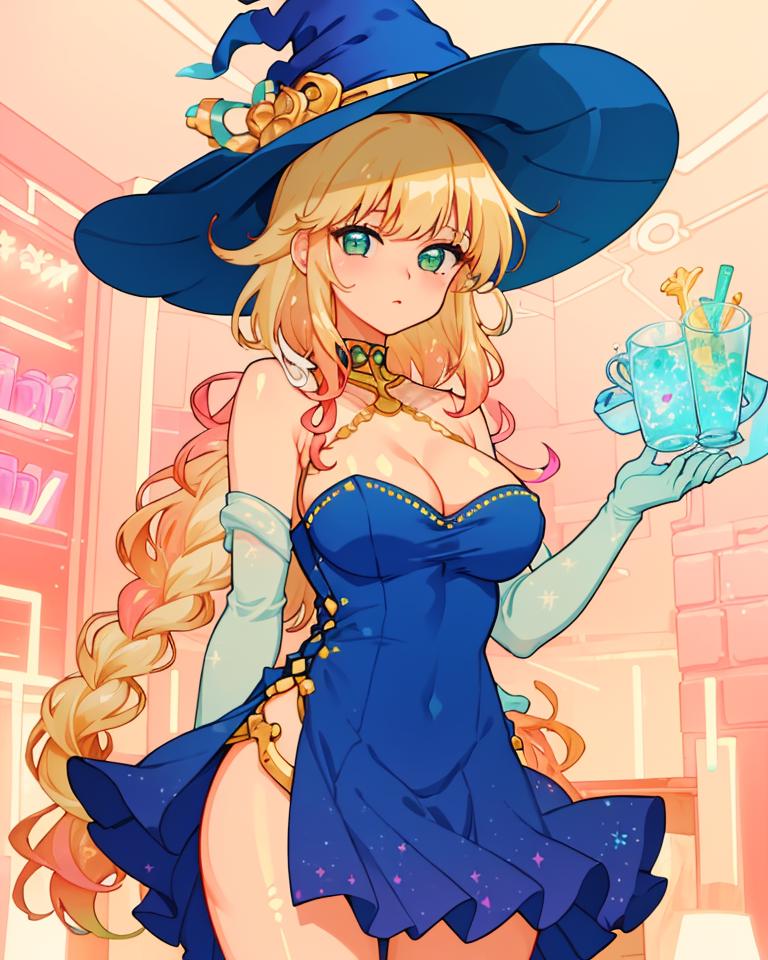 green eyes, bangs, multicolored hair, blonde hair, pink hair, braid