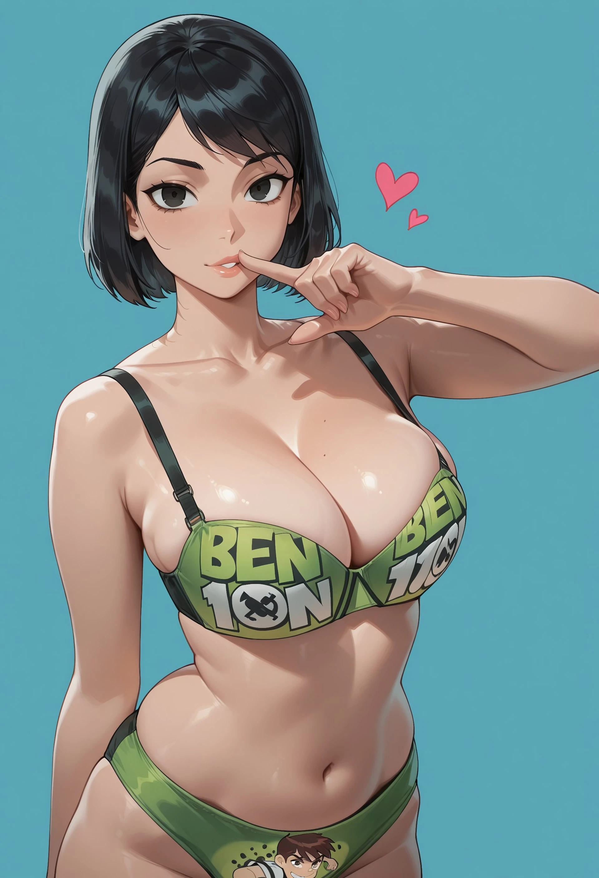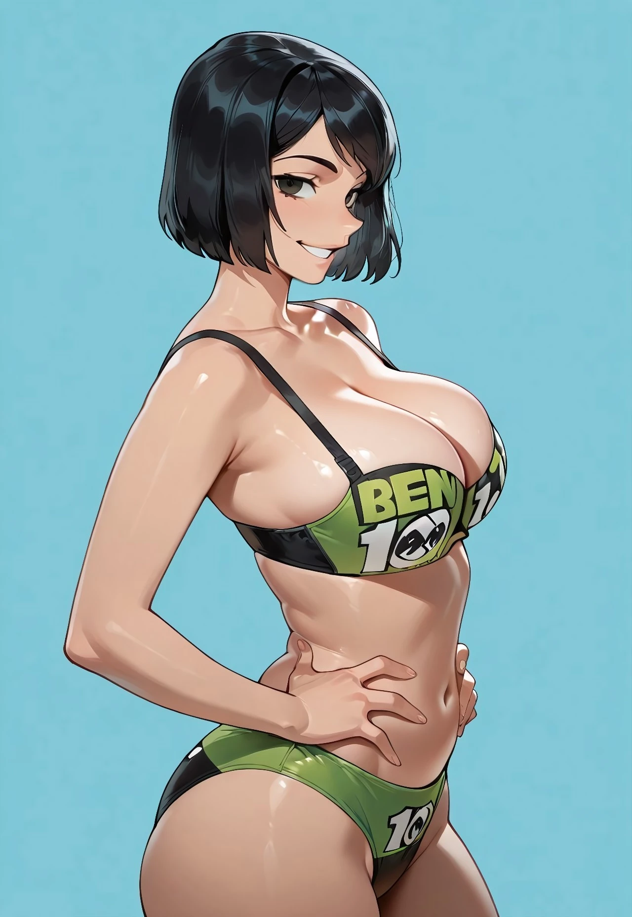 b3n1o_l1n, green bra, print bra, green panties, print panties, ben 10