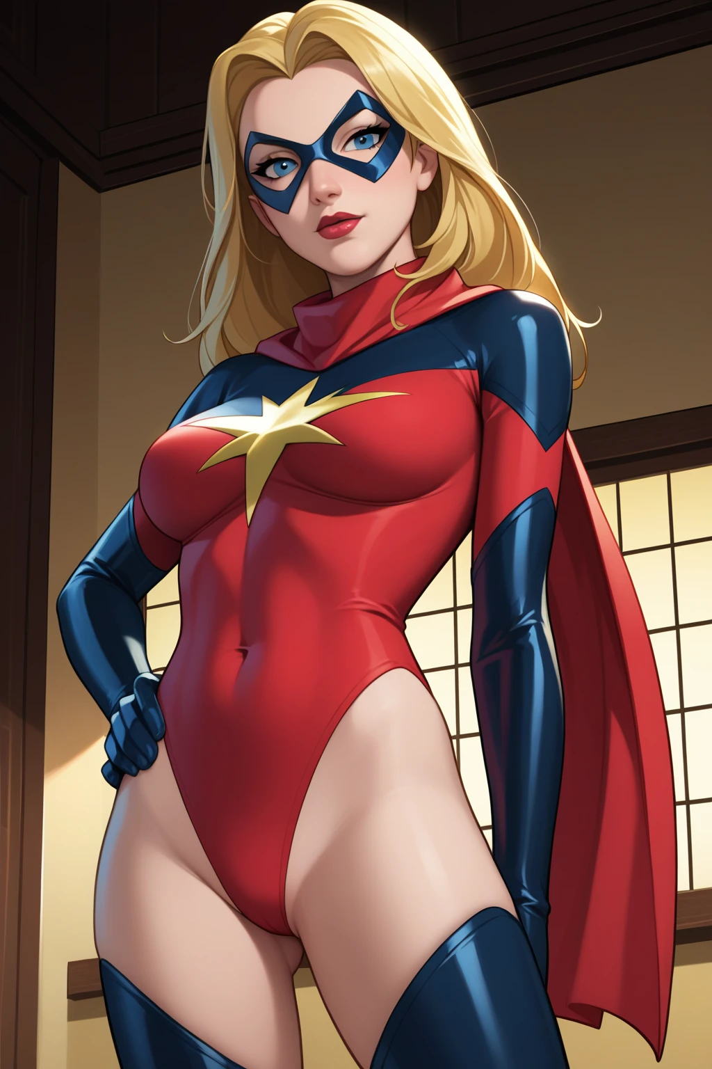 Base Prompt: carol danvers, long hair, blonde hair, blue eyes