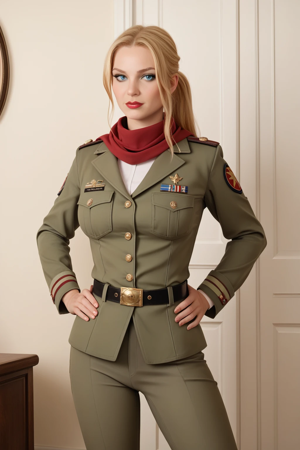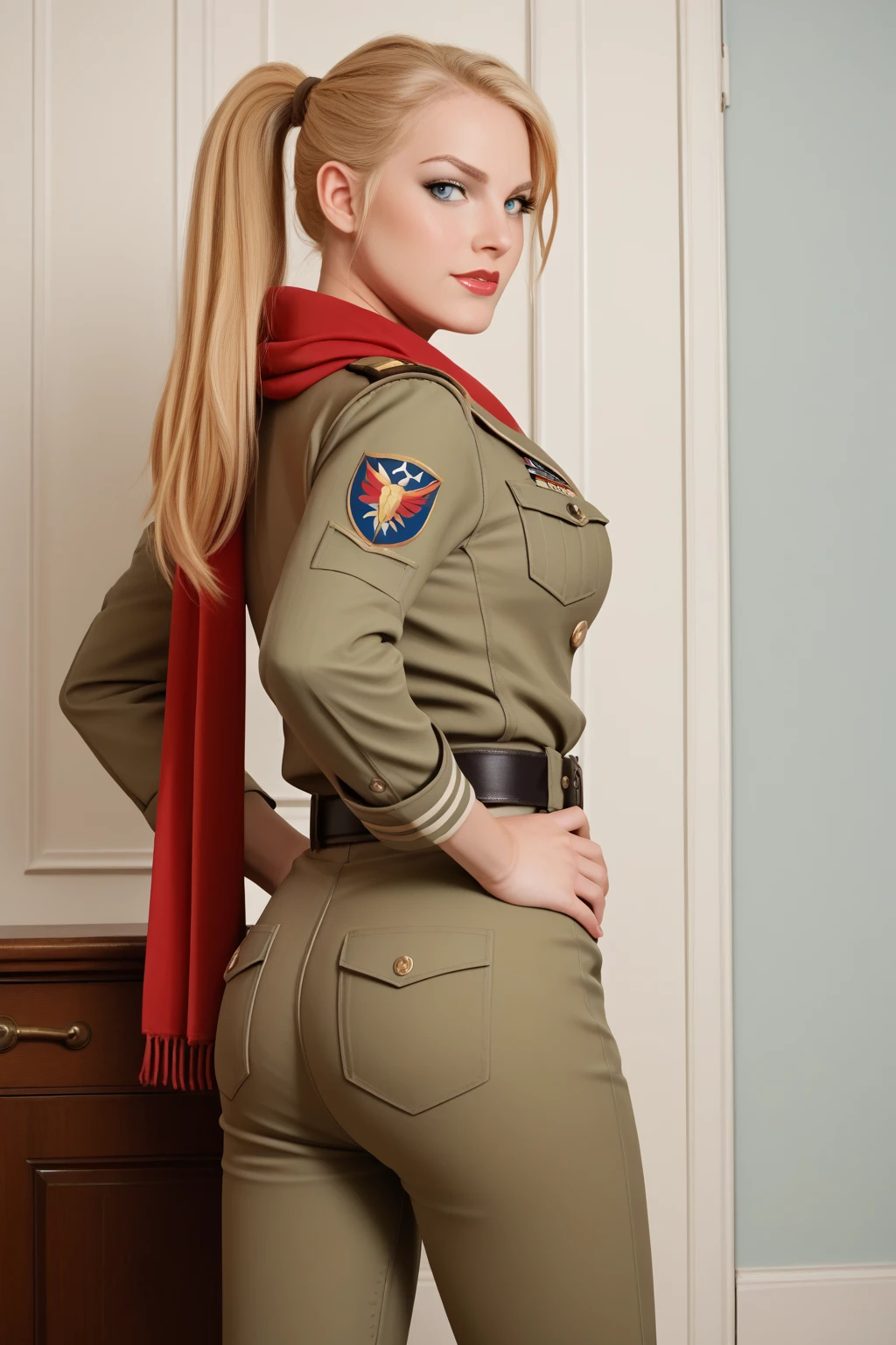 1st Appearance: ponytail, military, military uniform, pants, boots
