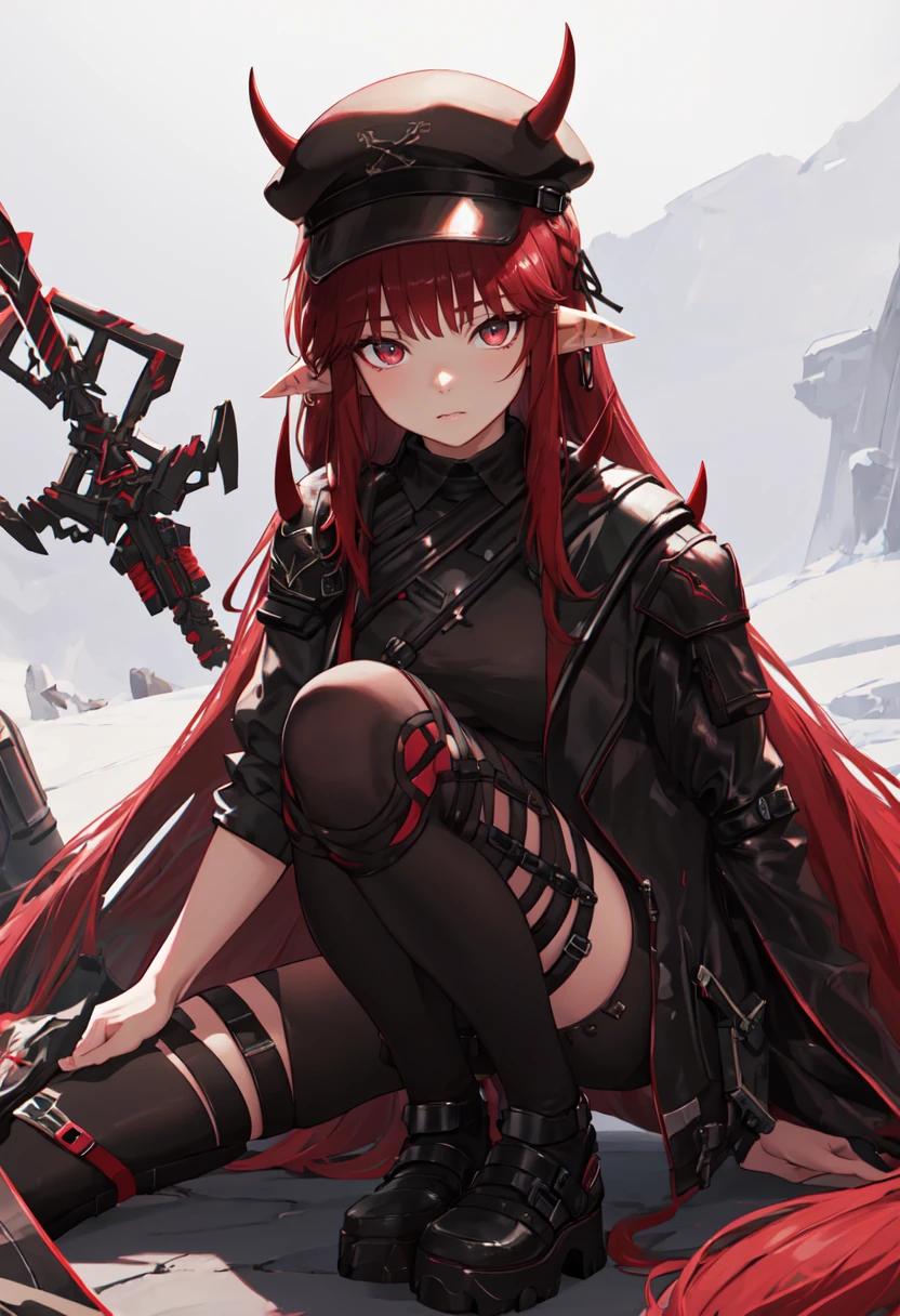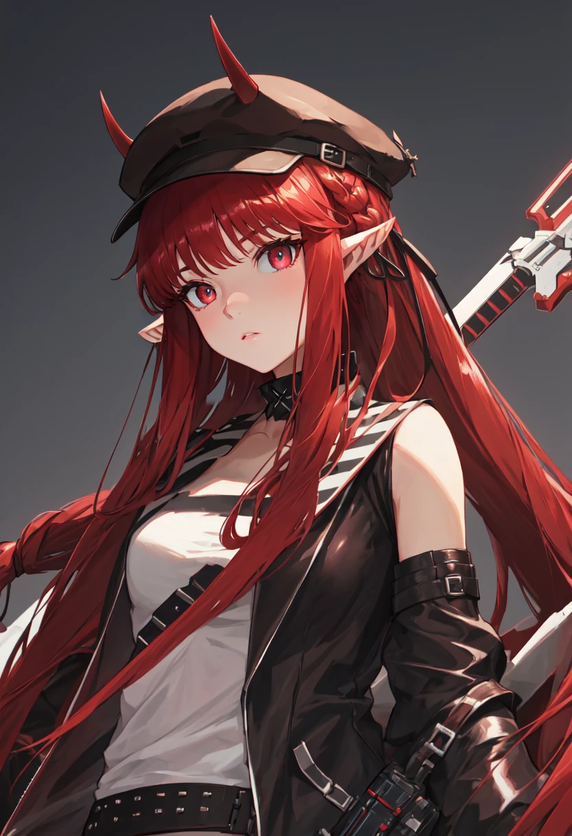 - The pruned character tags are long hair, pointy ears, red hair, horns, red eyes, hat, very long hair, black headwear, horns through headwear, braid, hair ornament, demon horns, cabbie hat, breasts. You can add them into prompts when core features (e.g. hair color) of character is not so stable.