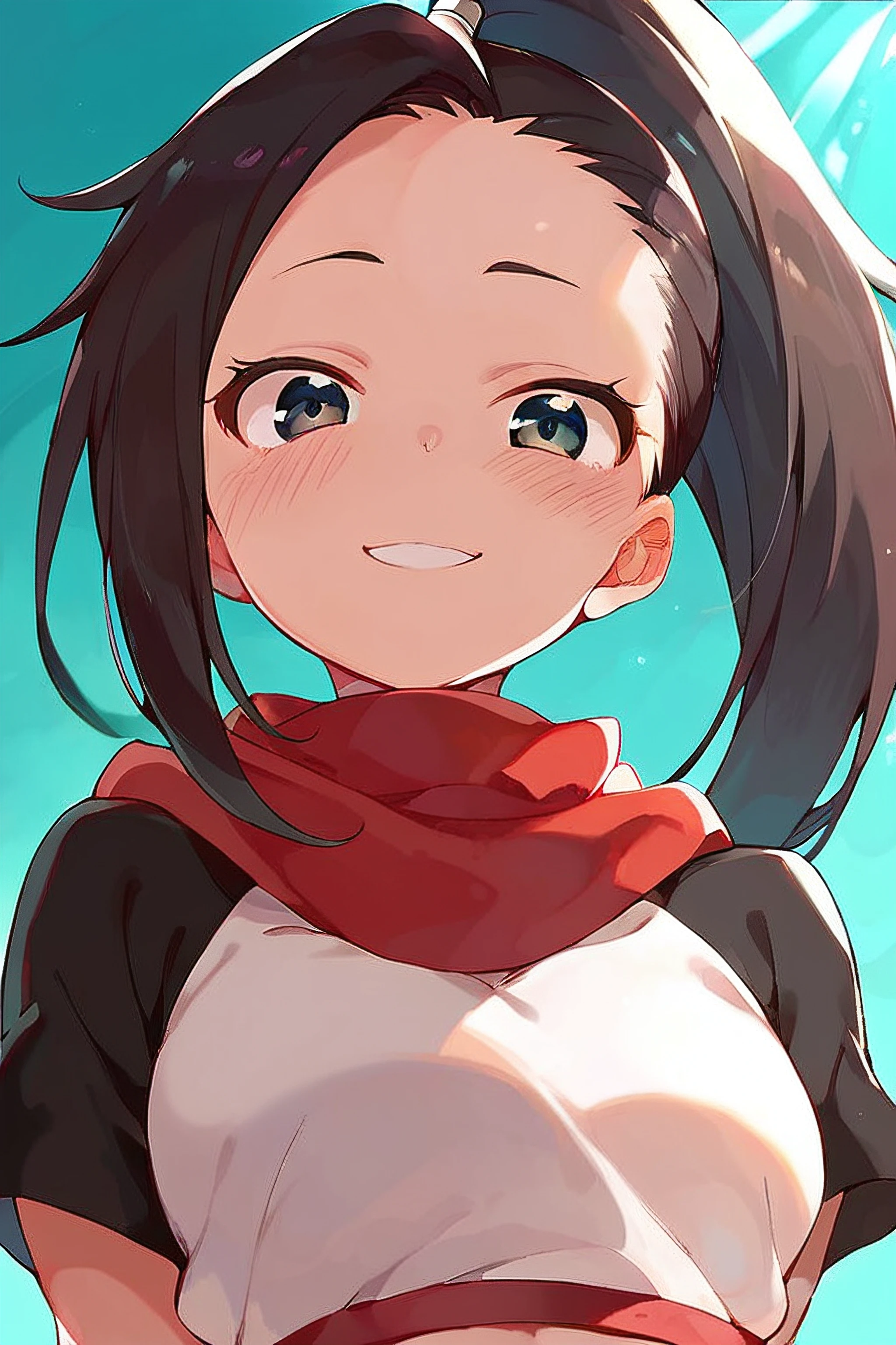 kunoichiTsubaki, 1girl, solo, ponytail, crop top, red scarf, bike shorts, pelvic courtainWould you like to have a model of a character? Contact me; I can assist you