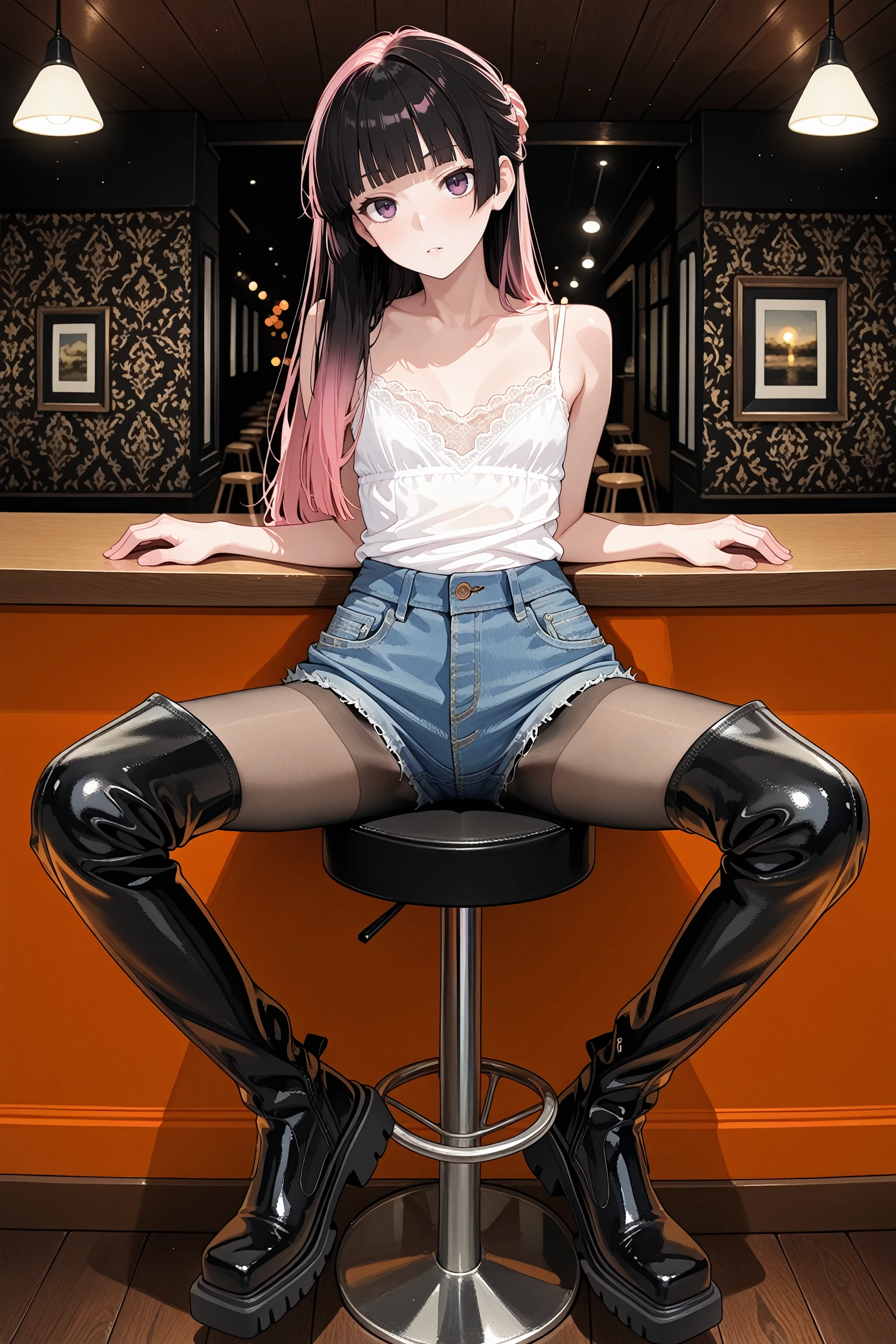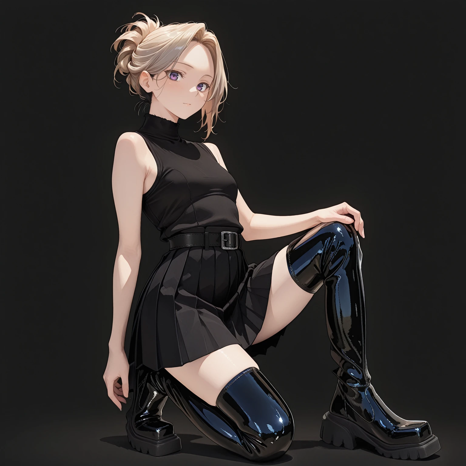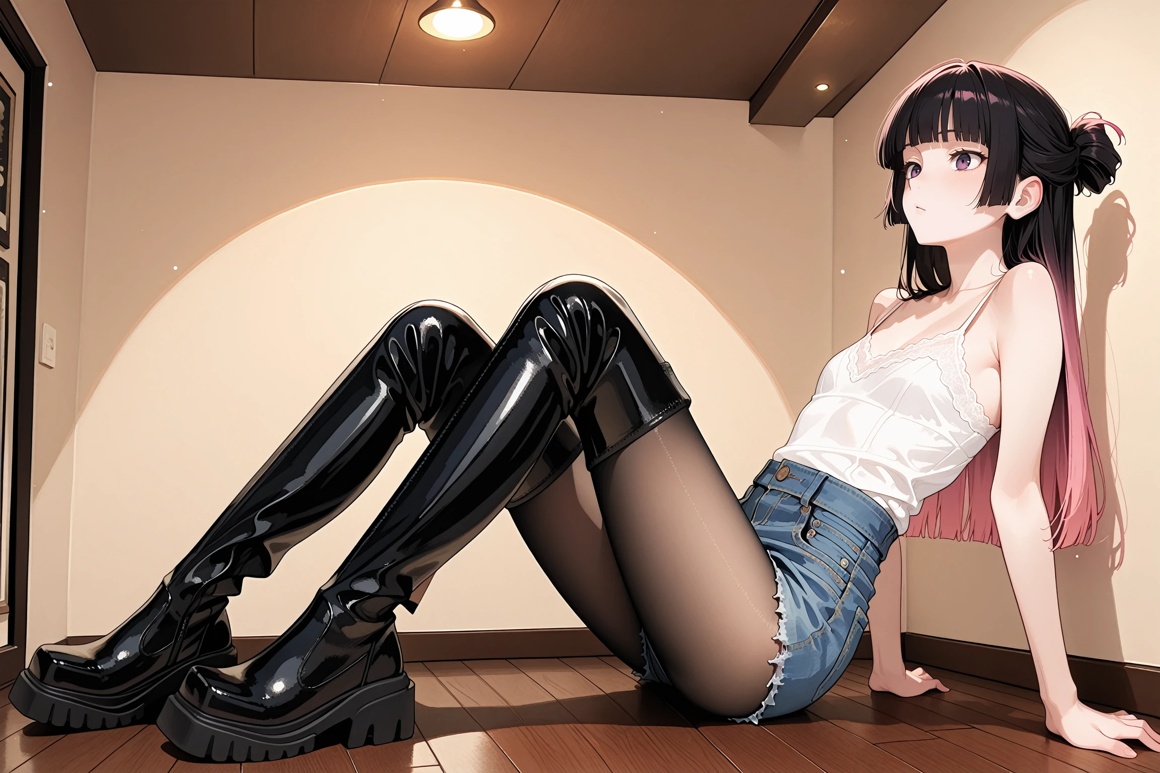 additional tags:thigh boots,square toe,black footwear,(leather/pvc),shiny footwear,