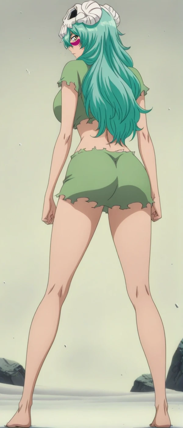 yellow eyes, long hair, green hair, facial mark, hair between eyes,