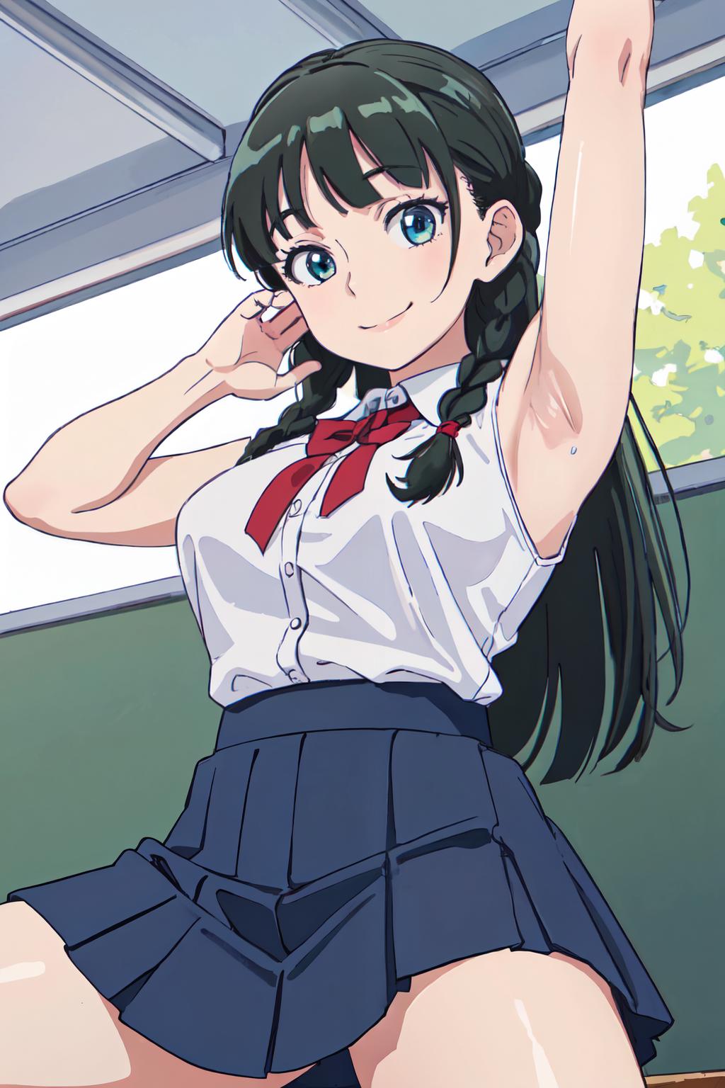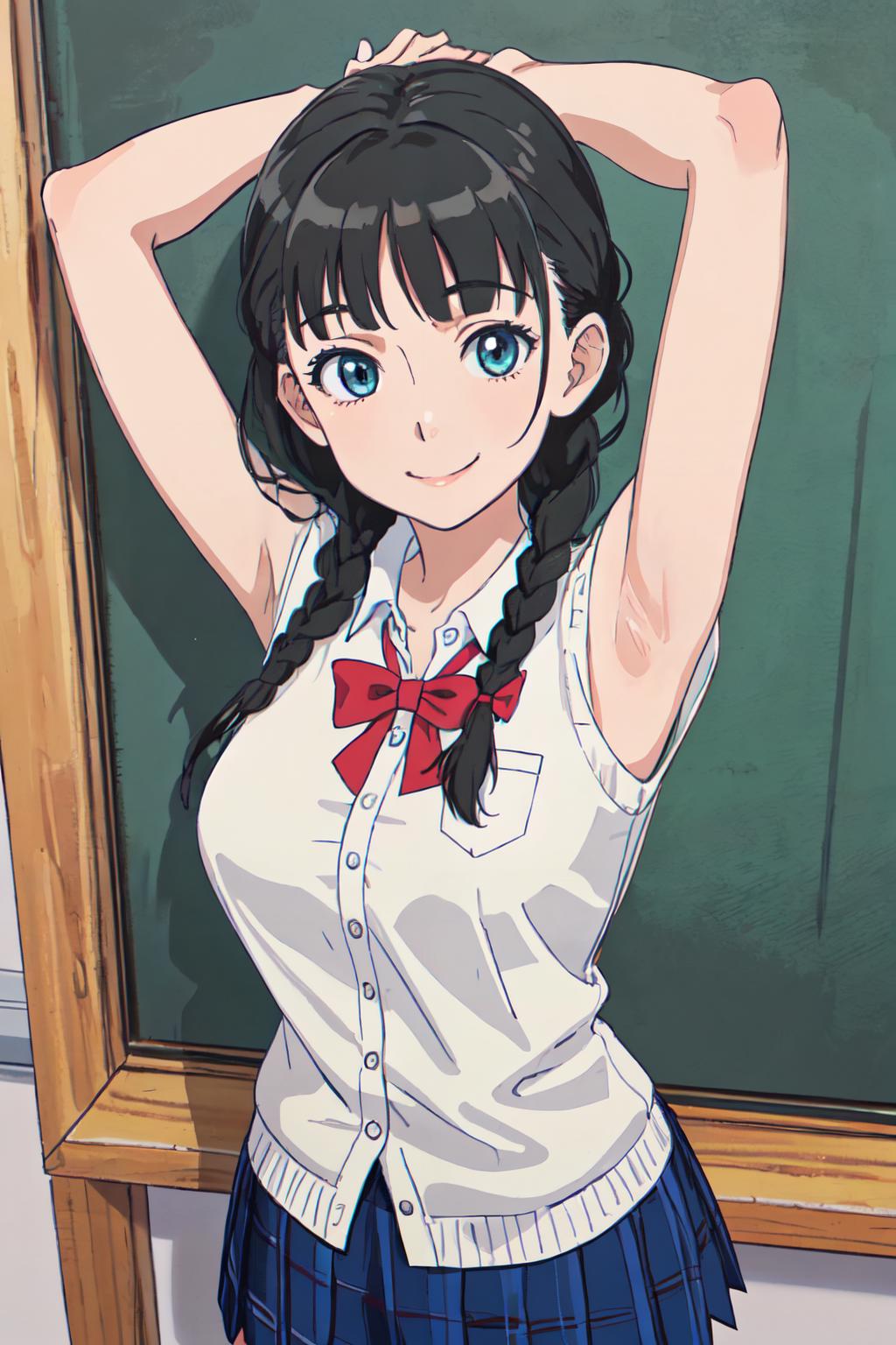 Ojou:1girl, solo, long_hair, smile, bangs, blue_eyes, black_hair, green_eyes, braid, twin_braids