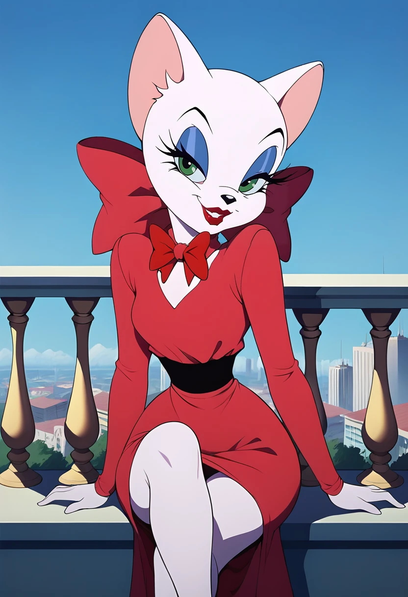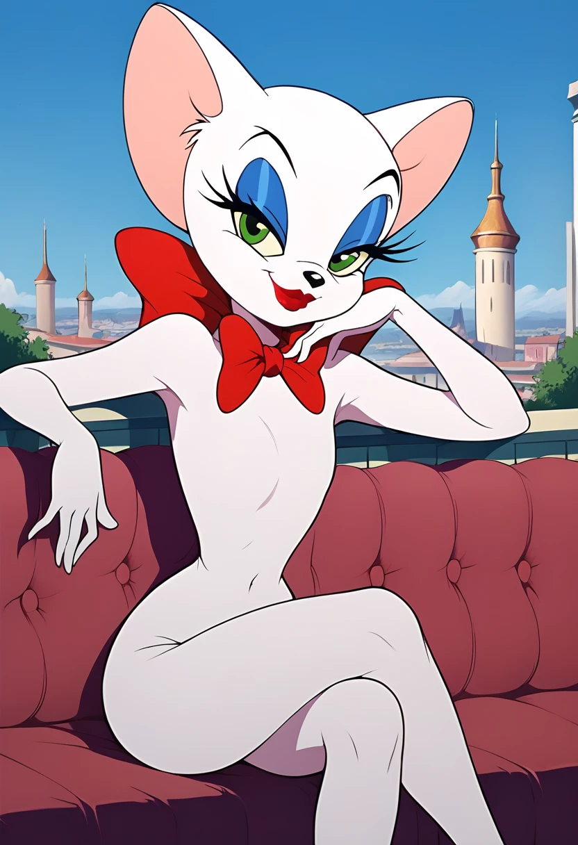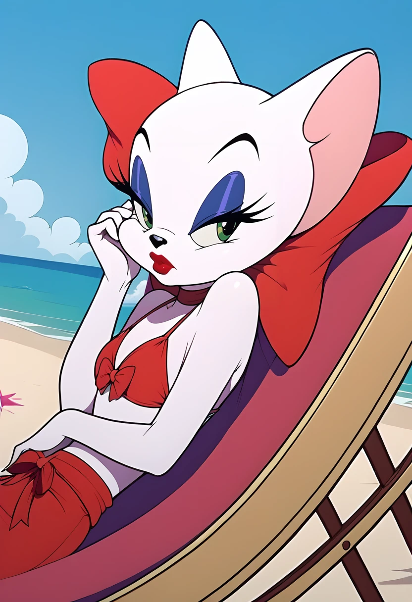 Trigger word: toodles galore Principal Tags: furry, cat, white fut,bow, red lips, makeup, green eyes