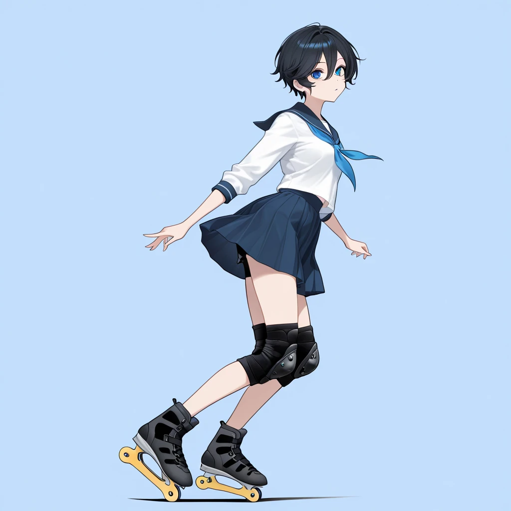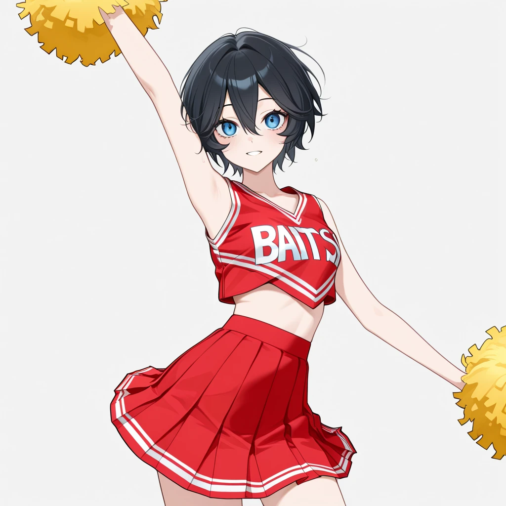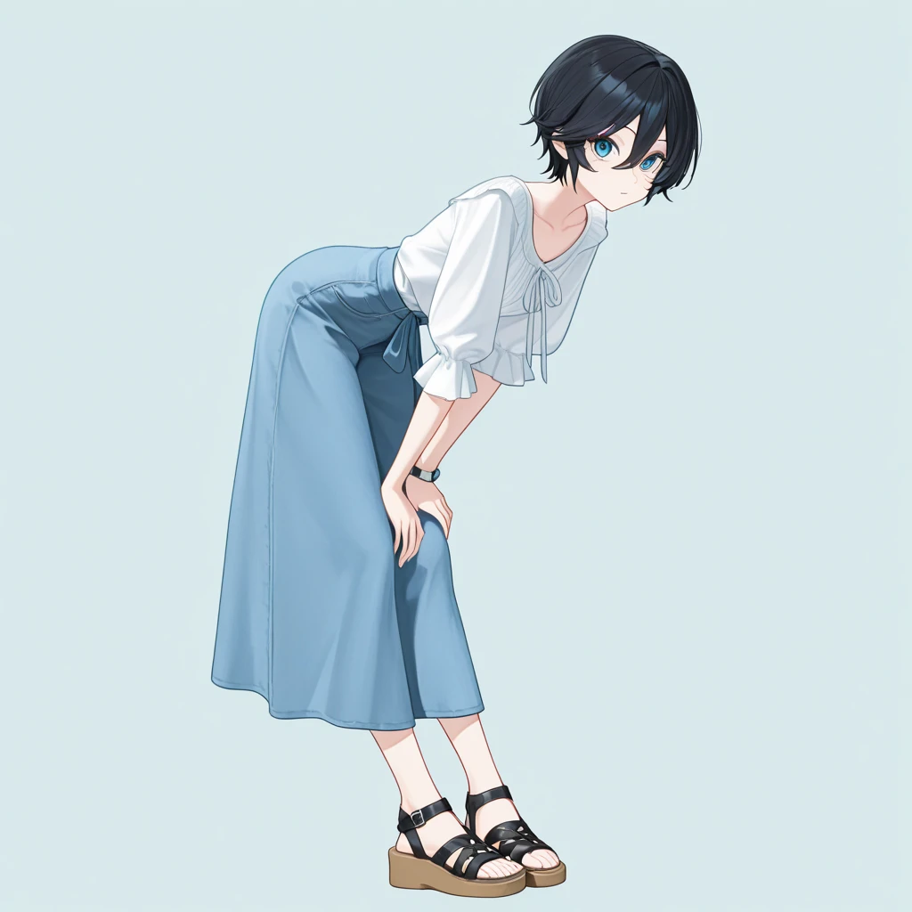 short hair, black hair, blue eyes, hair between eyes,