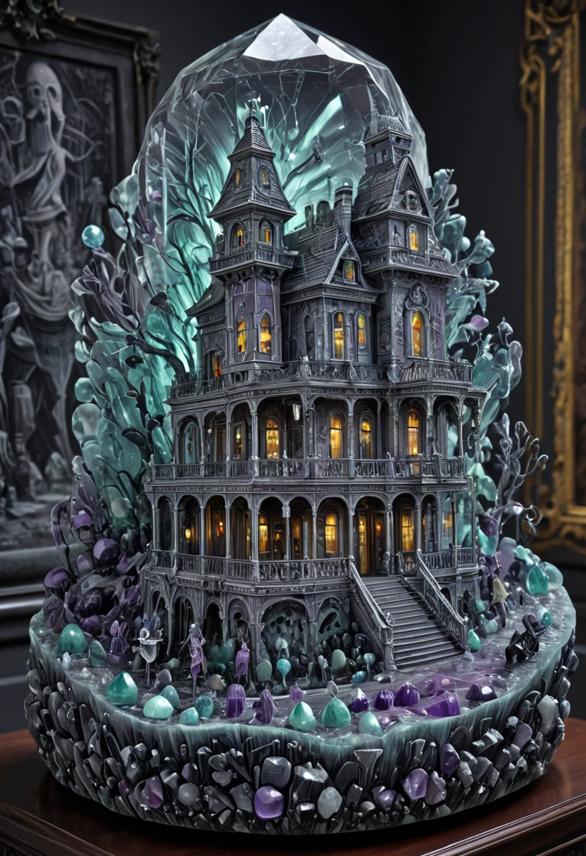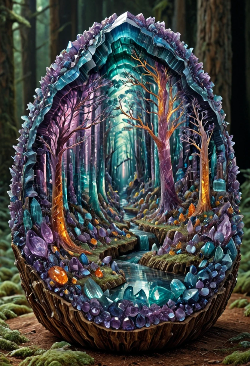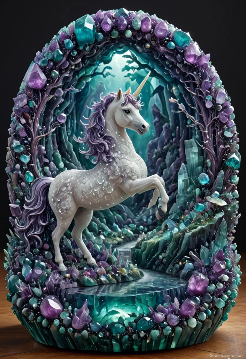 This model focused on a style of carved sculpture in gems, the concept itself is to see landscapes that blend fantasy and surrealism, giving the illusion of a peek into a world hidden in gems/geodes, heads the name of the model.