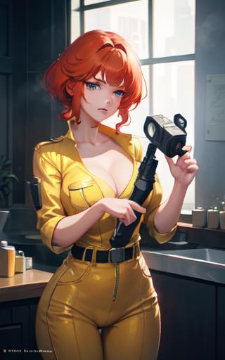 a woman in yellow jumpsuit