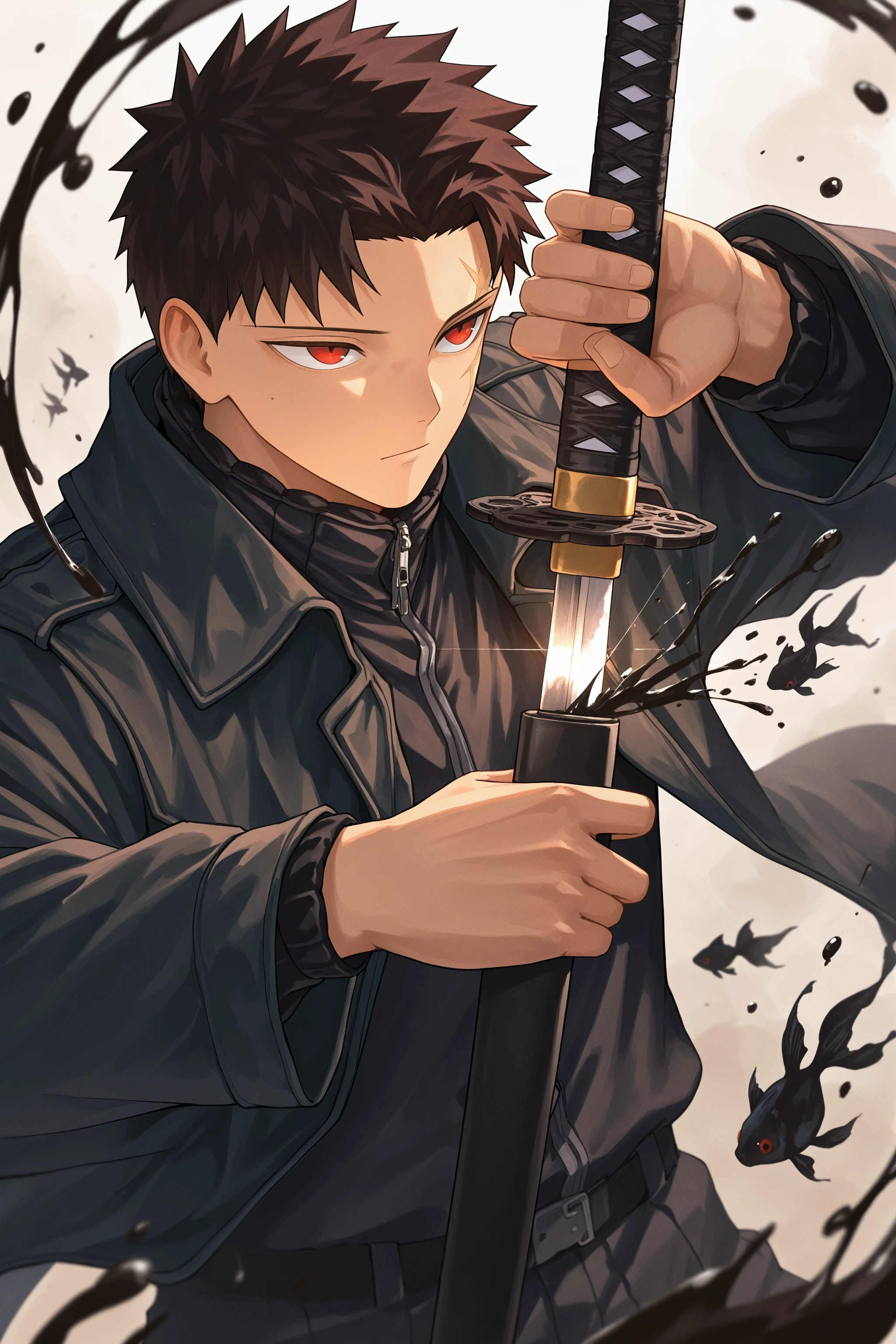 Main prompt: 1boy, chihiro rokuhira, red eyes, scar on face