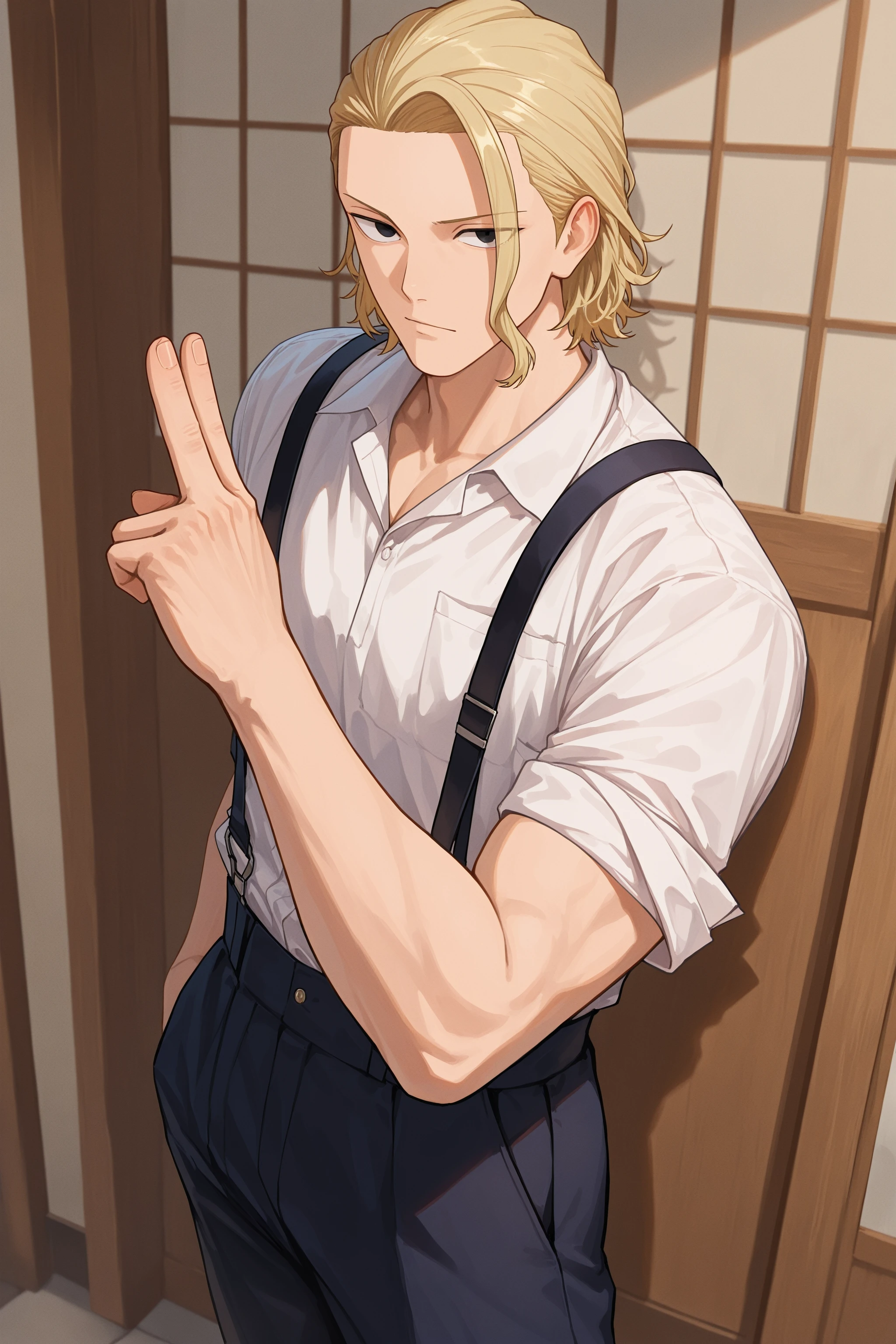 Main prompt: 1boy, togo shiba, blonde hair, black eyes