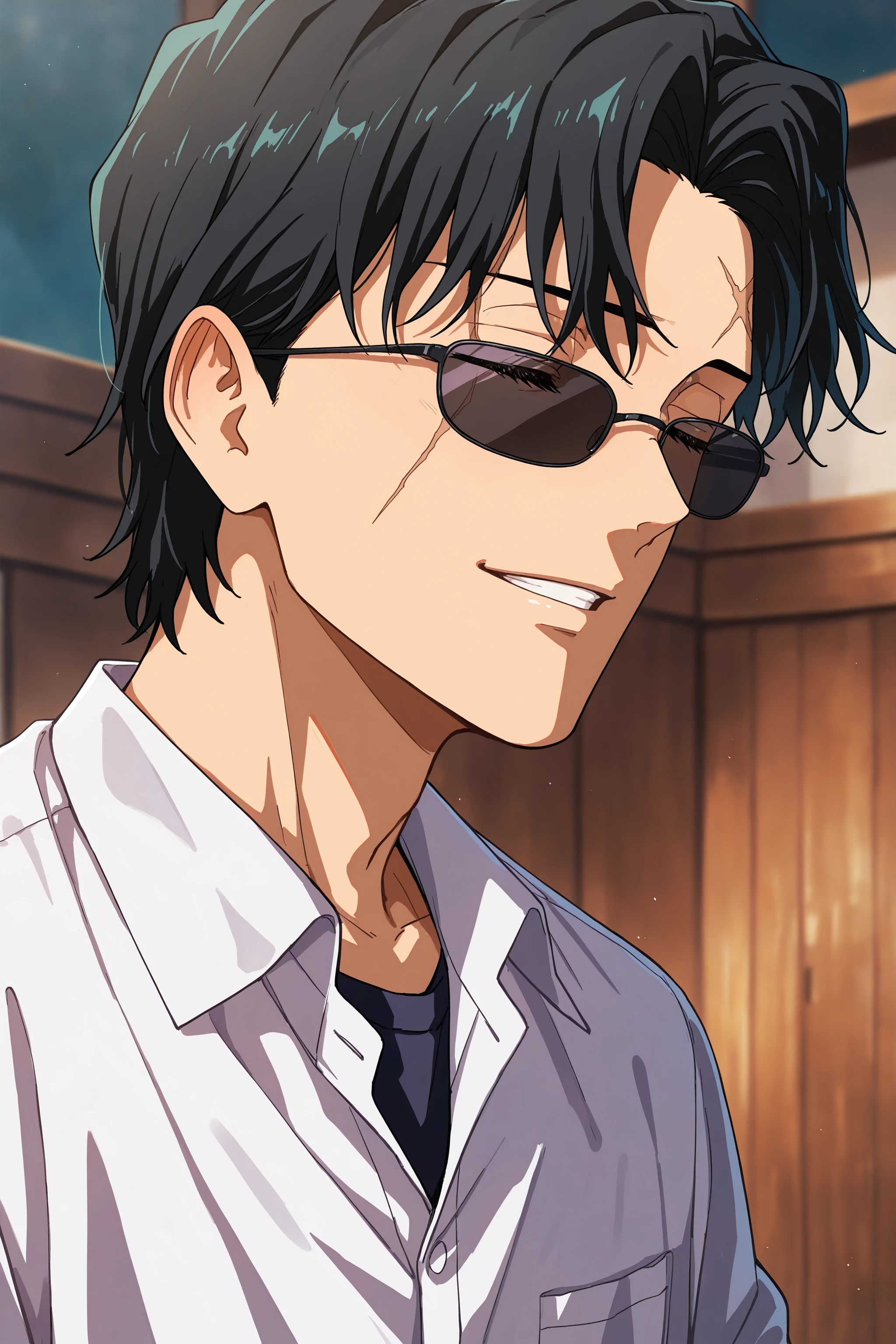 Main prompt: 1boy, seiichi samura, sunglasses, closed eyes, scar on face