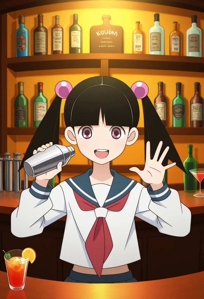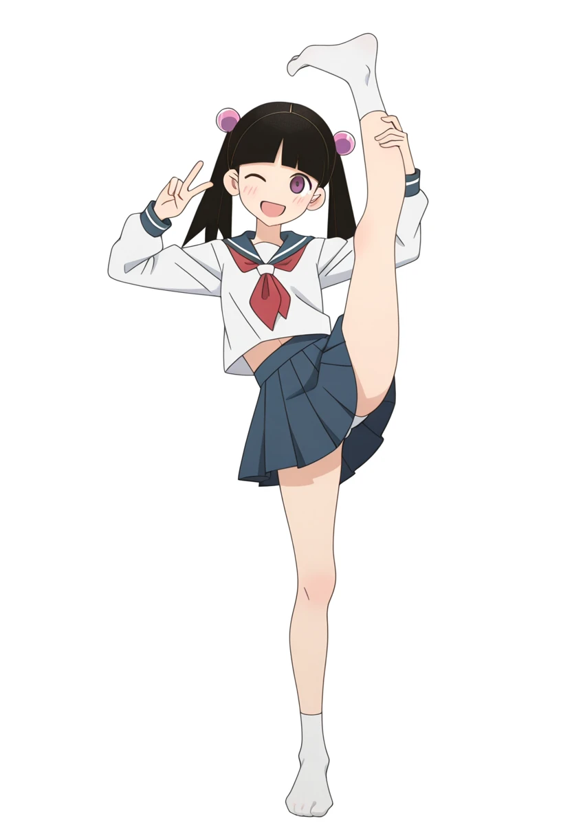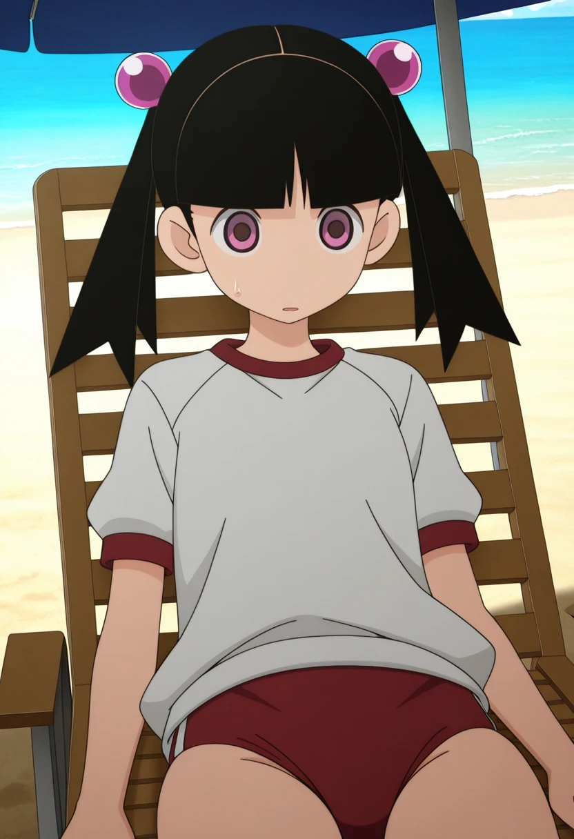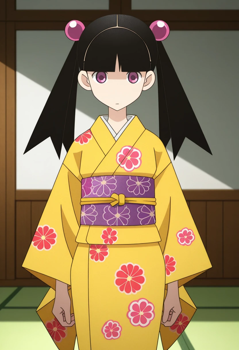 meruww, petite, purple eyes, black hair, long hair, twintails, blunt bangs, hair bobbles,