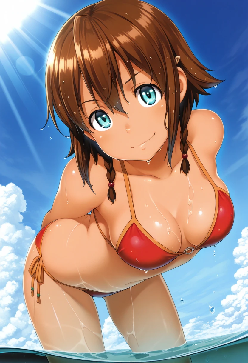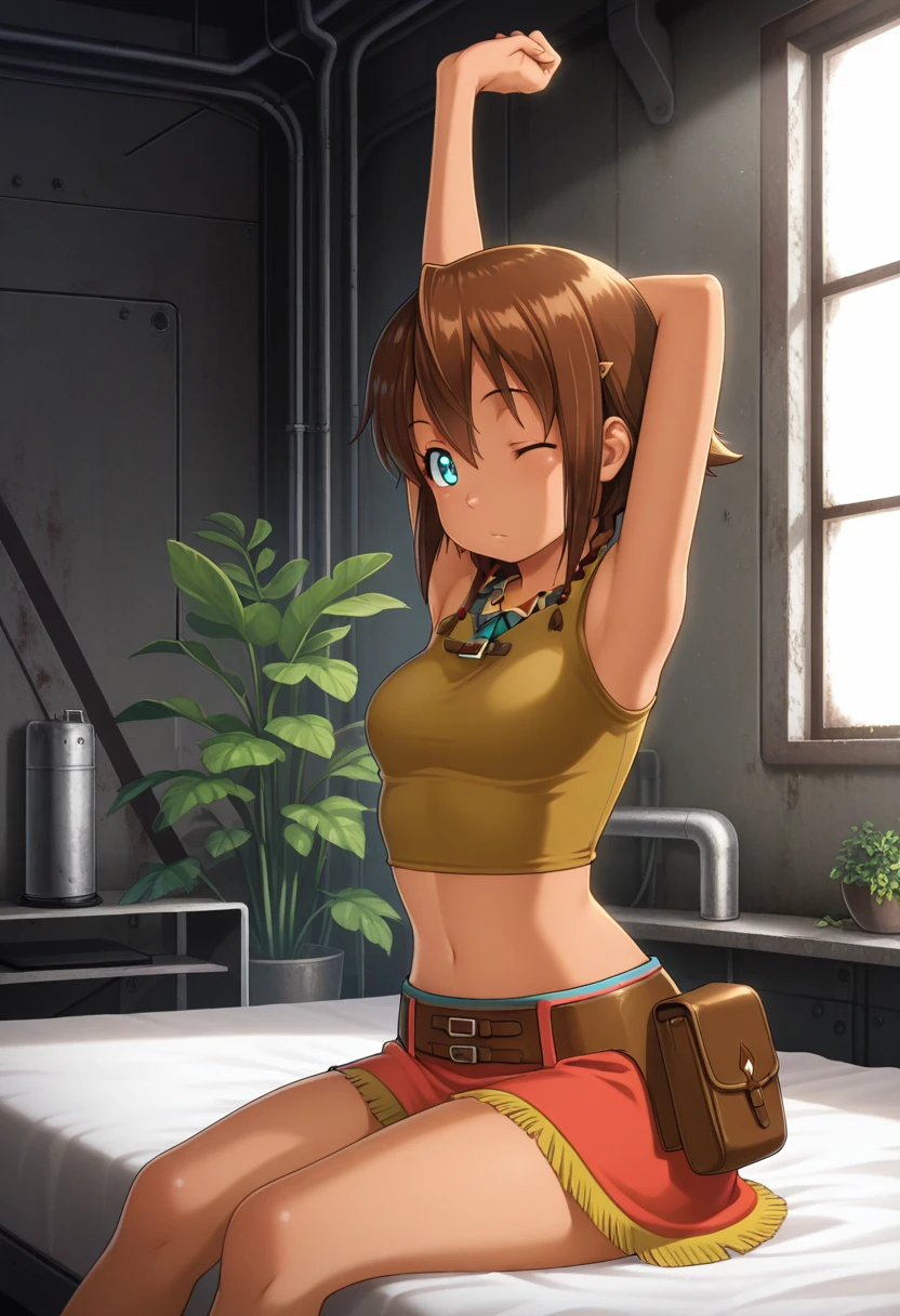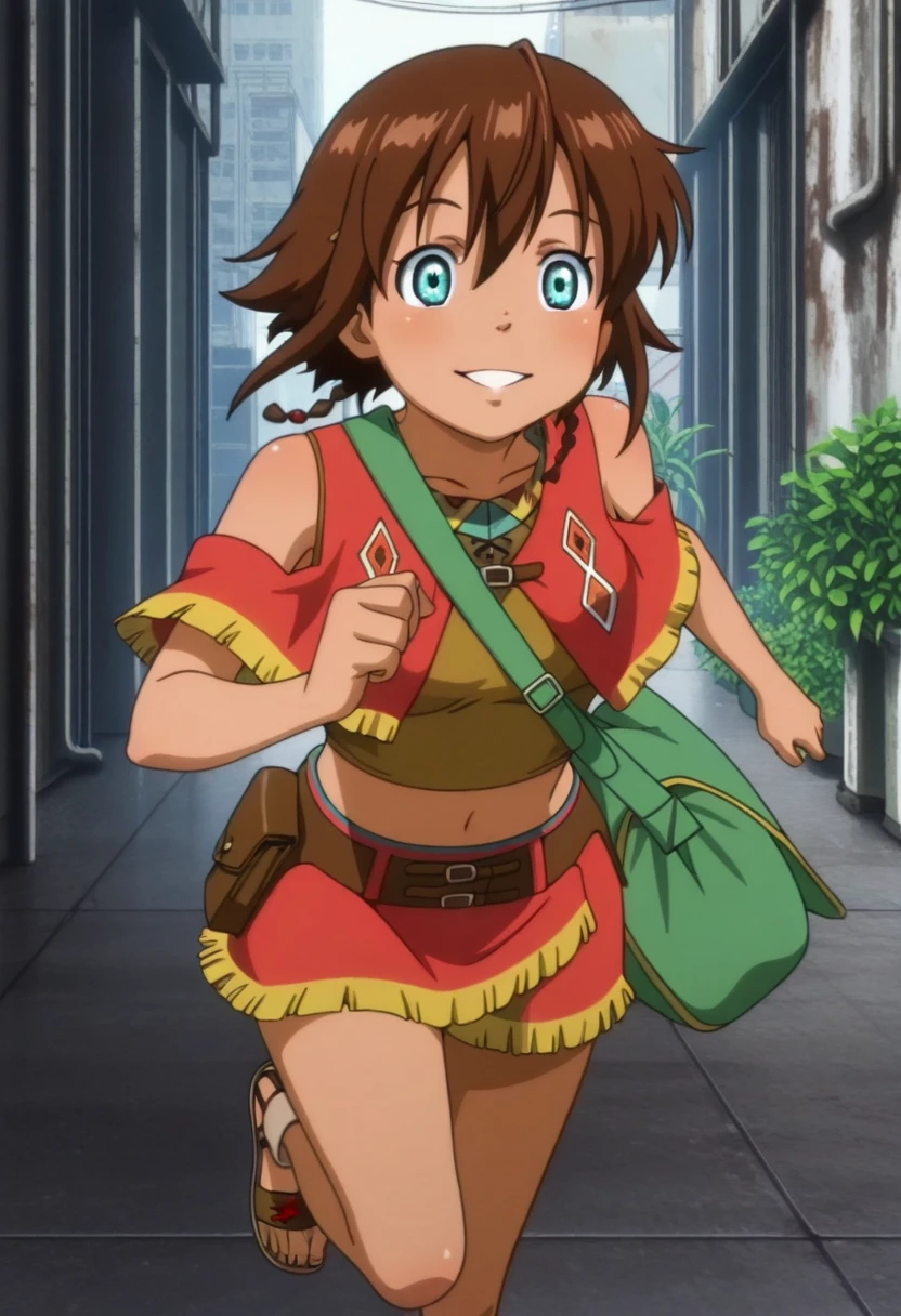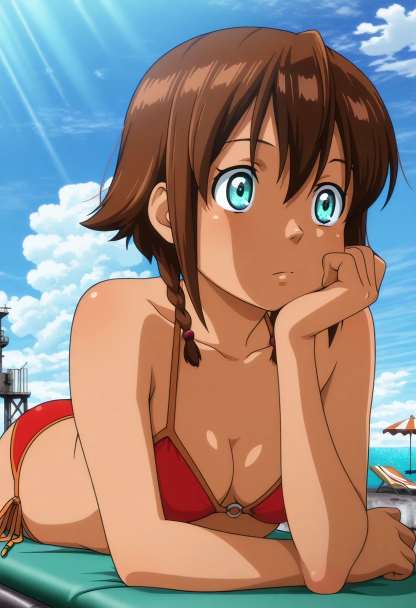 amysng, amy (suisei no gargantia), suisei no gargantia, aqua eyes, short hair, brown hair, twin braids, Casual outfit :