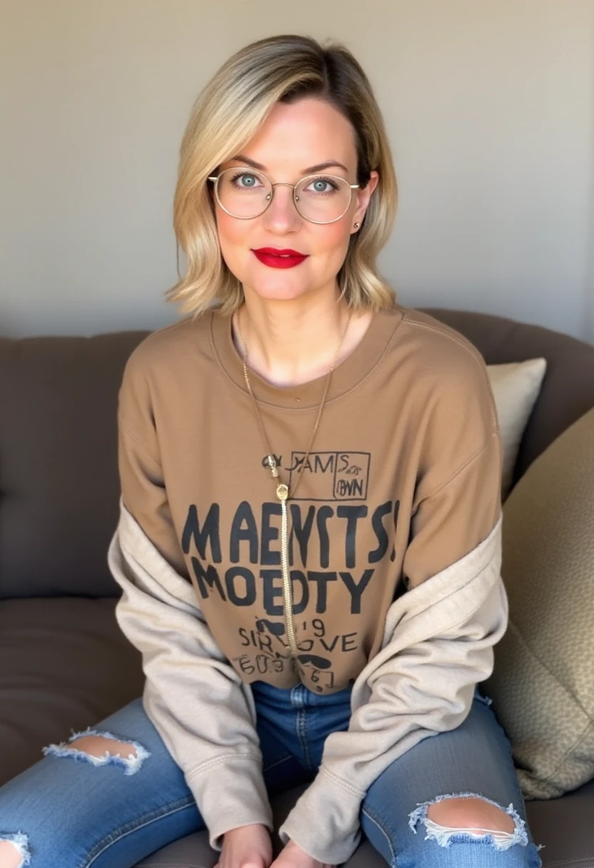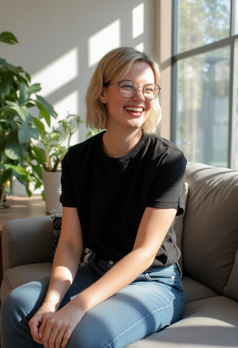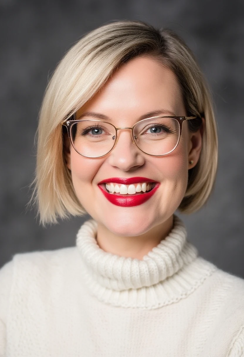 Negative prompt not needed, but glasses may be interesting. However, this may need a few tries due to limits in the dataset.