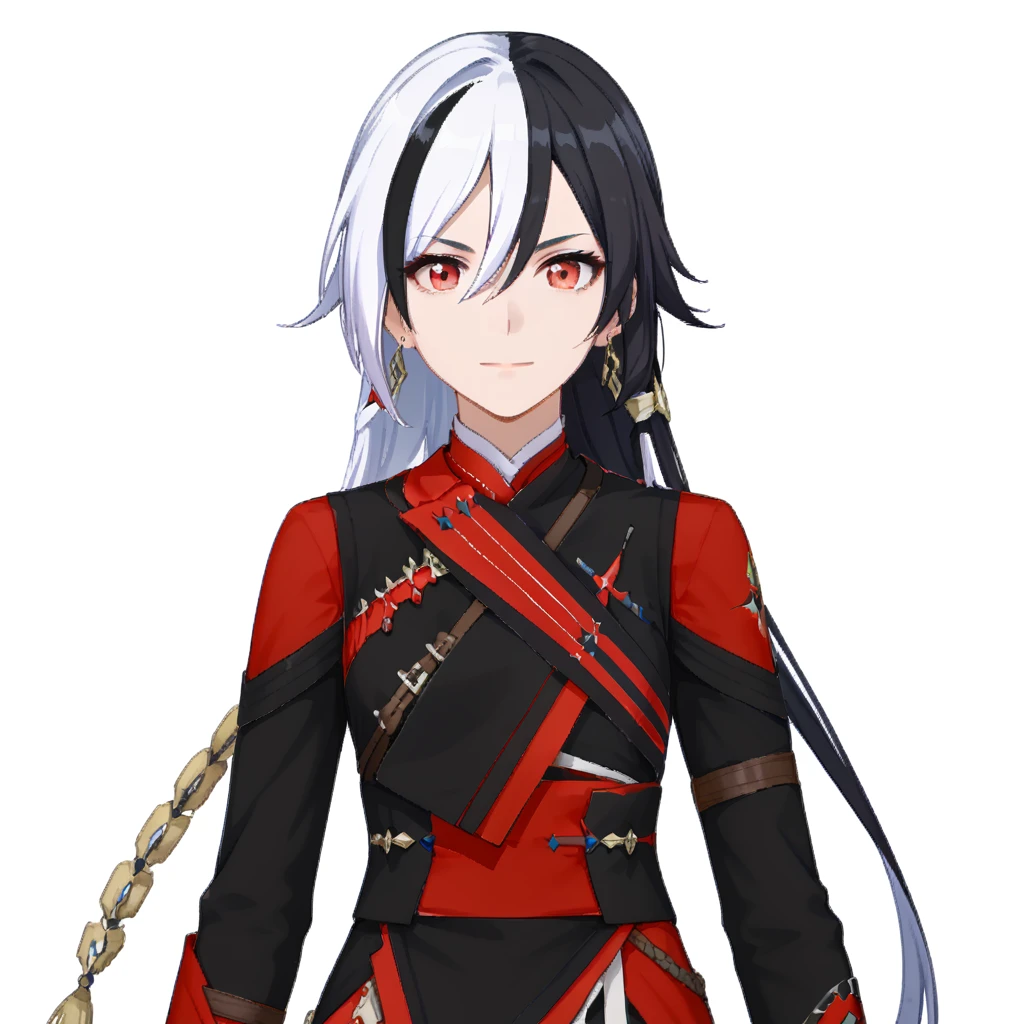 heiyuan,grin,low ponytail,blanket,belt,silver hair,low-tied long hair,messy hair,two-tone hair,streaked hair,jewelry,leather,long hair,bandages,white hair,black hair,red eyes,red rope,red legwear,fu hua,hakama,armor,brown footwear,high heel boots,jacket,dress,toeless legwear,arm wrap,sarashi,high heels,gradient hair,long sleeves,multicolored hair,braid,gloves,pants,earrings,1girl,bangs,closed mouth,expressionless,hair between eyes,hair ornament,long hair, Anime,heiyuan
