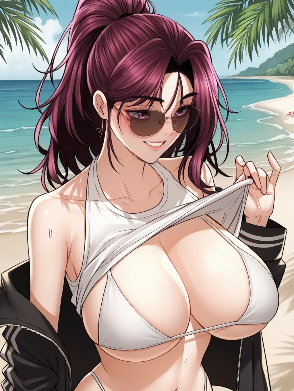 tags: shindohee,large breasts,purple hair, milf, purple eyes,dark magenta hair