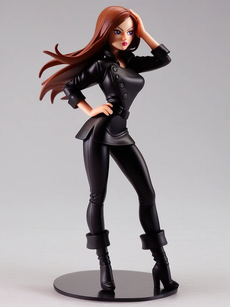 BASE Outfit: "brown hair, long hair, blue eyes, lipstick, black coat, belt, buttons, black pants"