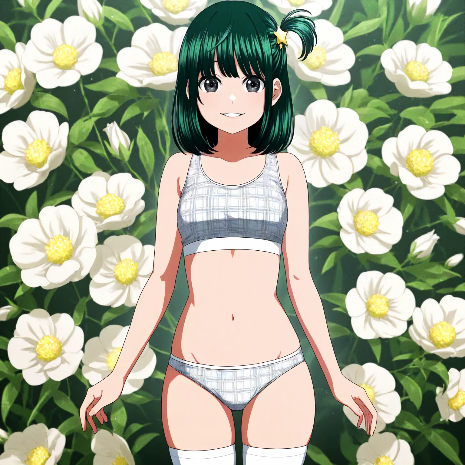 plaid bra,white bra,sports bra, sport panties, white_thighhighs,