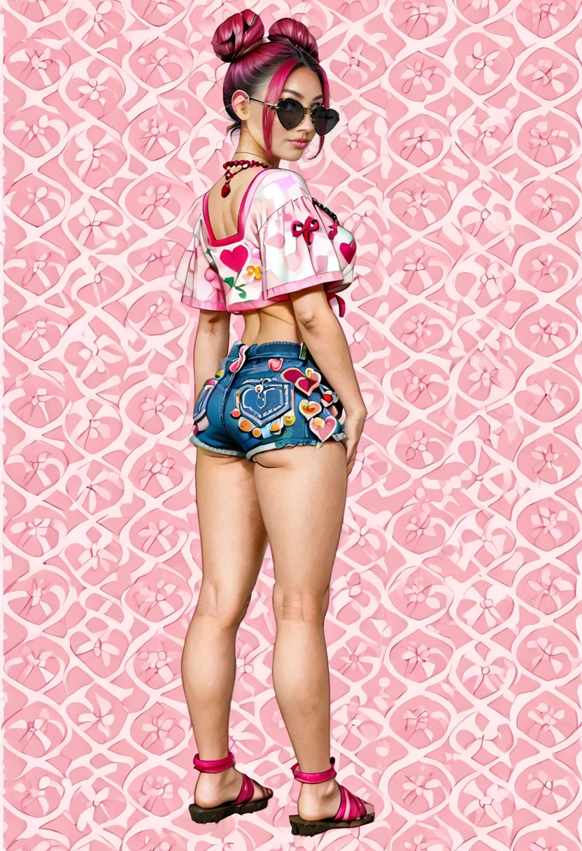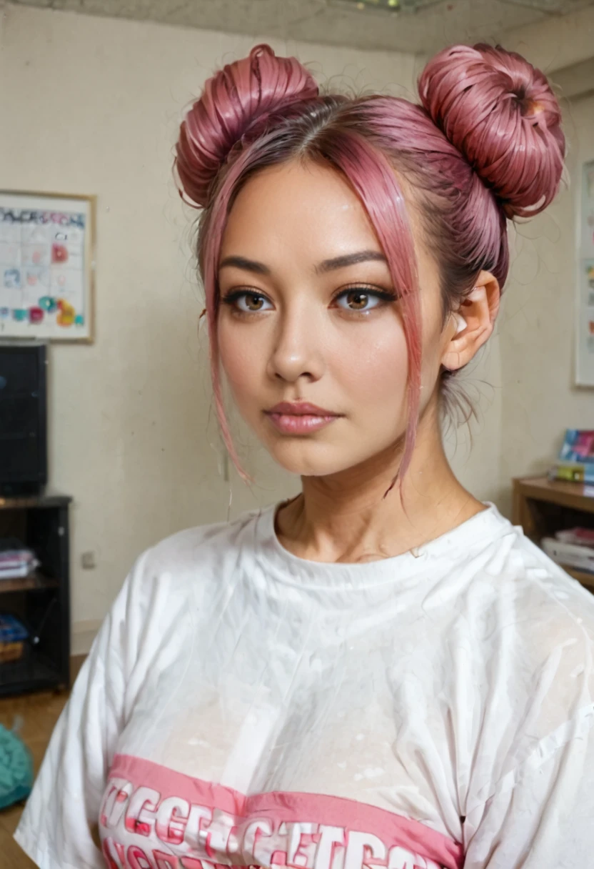 Rose’s features include: pink hair, double buns, brown eyes (add these features to the prompt for more accuracy).