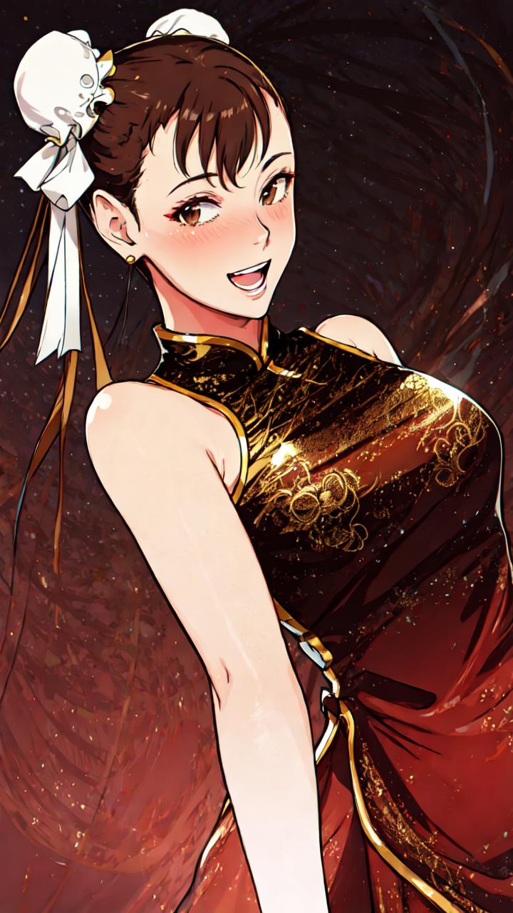 chunlist, 1girl, brown hair, short hair, hair bun, double bun, bun cover, brown eyes,