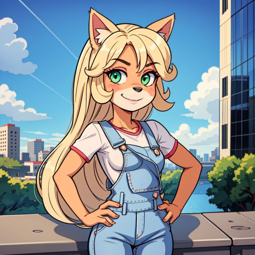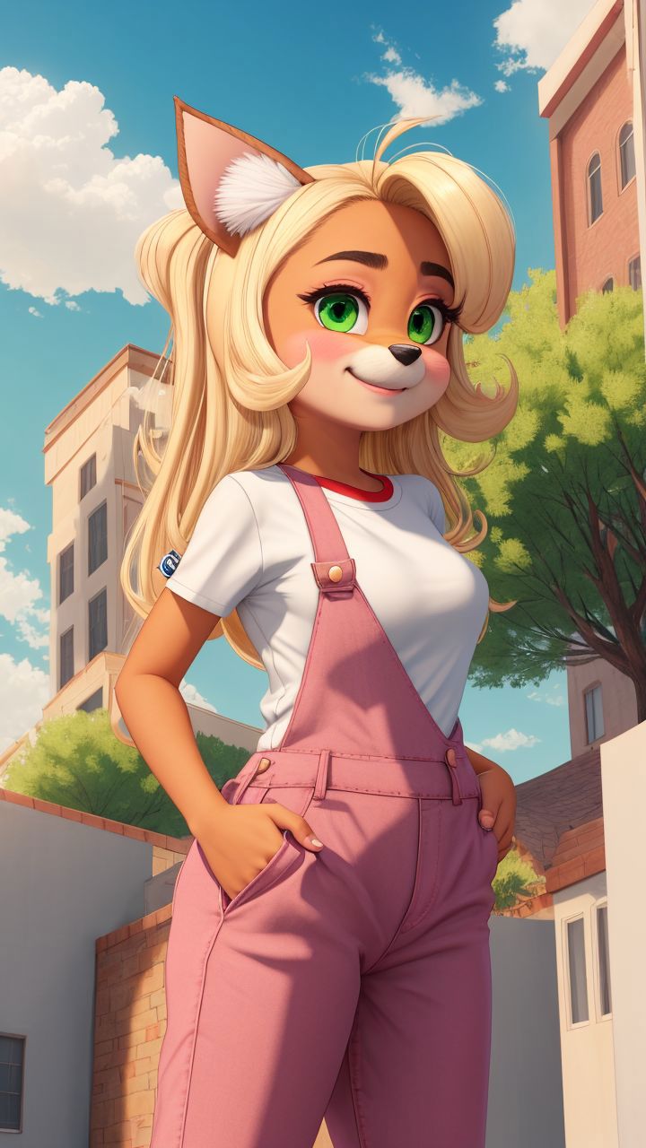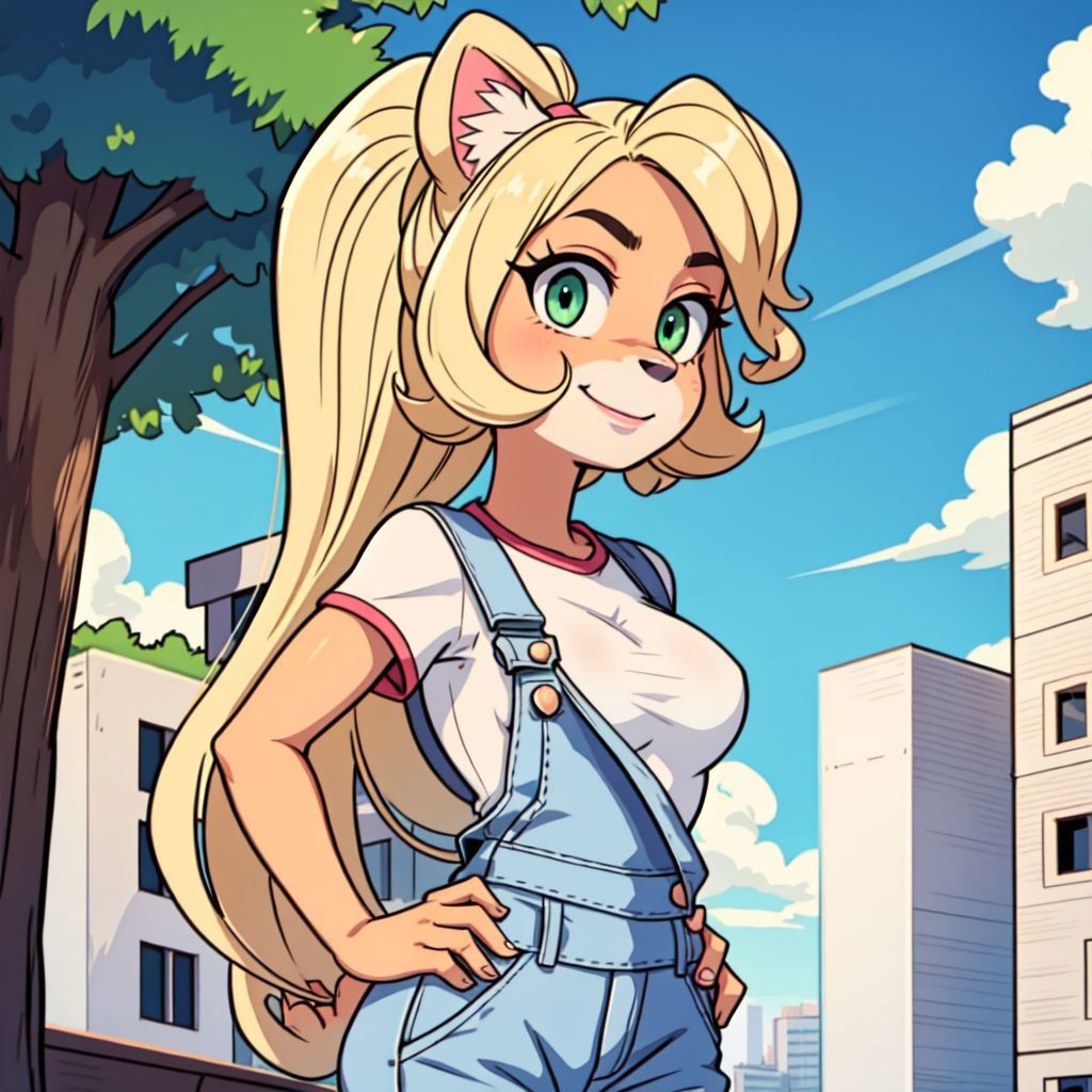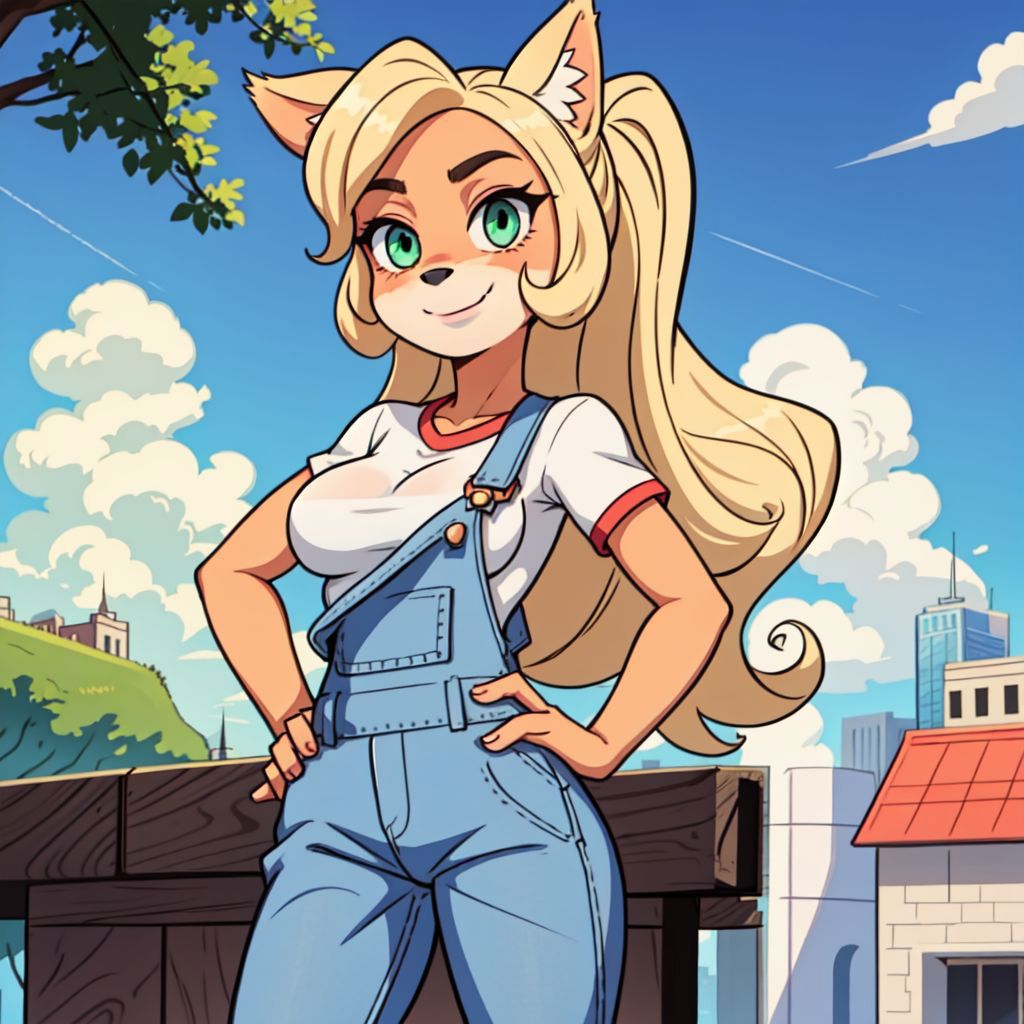 'Coco Bandicoot, furry female, overalls, white shirt, huge ahoge' - Example prompt