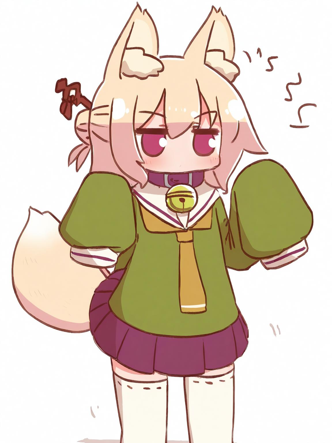 Components: kemomimi - Head + Eyes + Ears + Bangs... blonde hair - Character's hair color... single hair bun - Character's hair accessory... fox tail - Character's tail... personating - Personification... objectification - Objectification (Stable)... animalization - Animalization