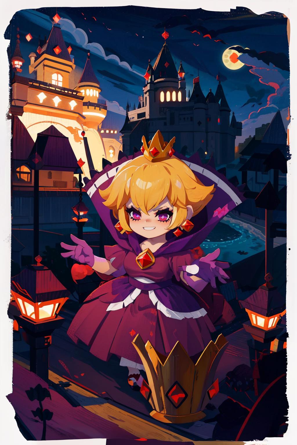 Shadow Queen Peach, from Paper Mario: The Thousand-Year Door, trained on animefull. Trigger word is squeenp