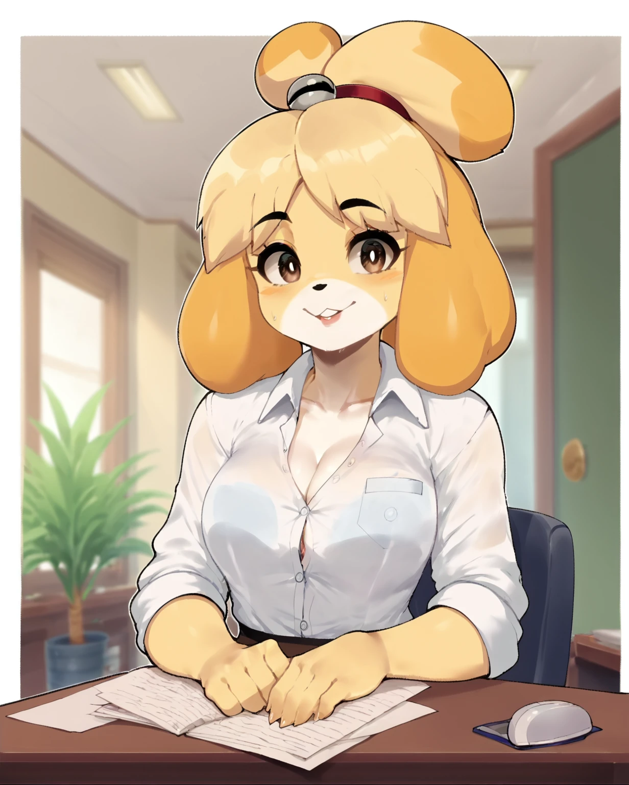 1girl, solo, isabelle (animal crossing), blonde hair, animal ears, furryAnyway, Have Fun!