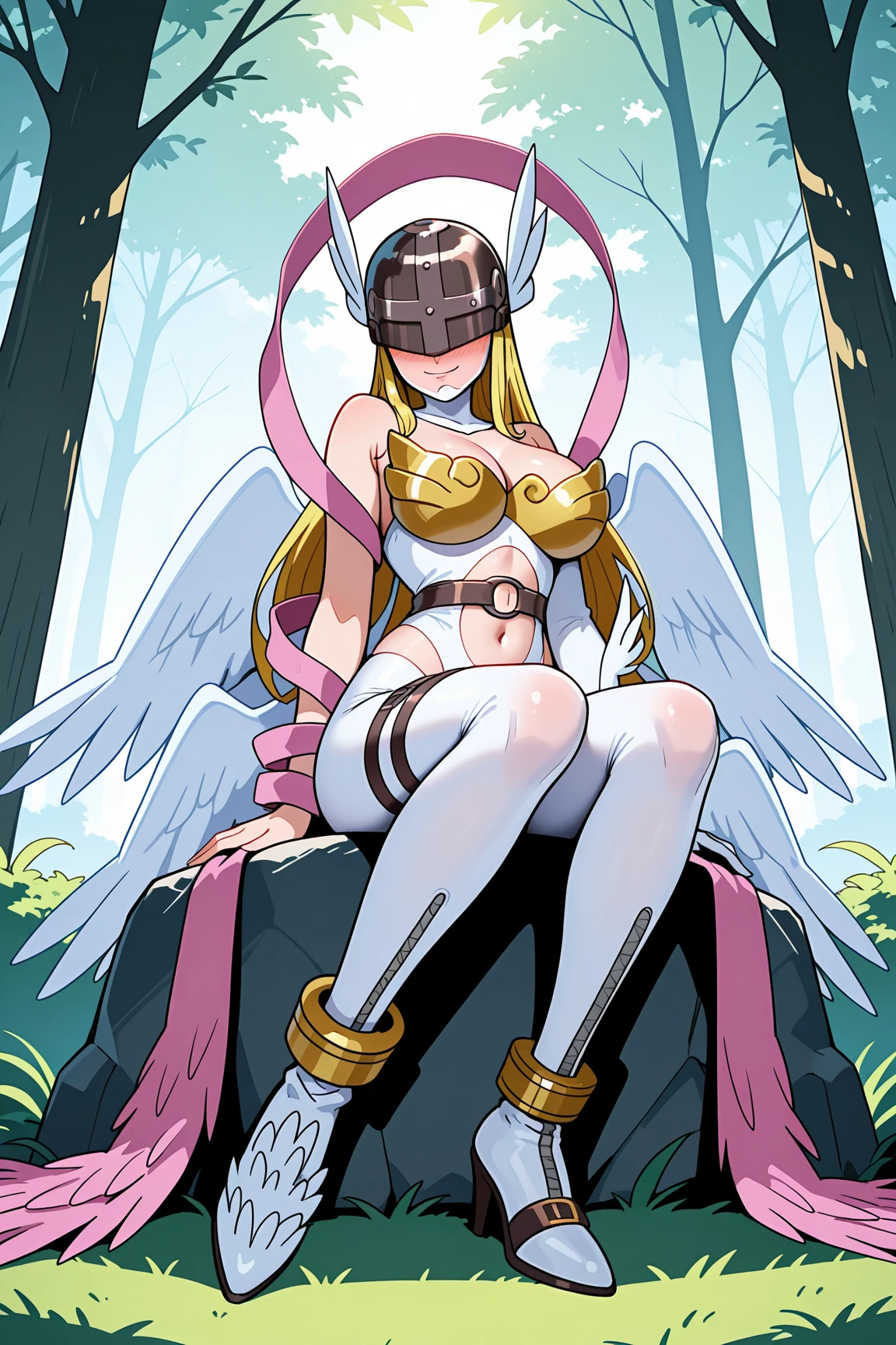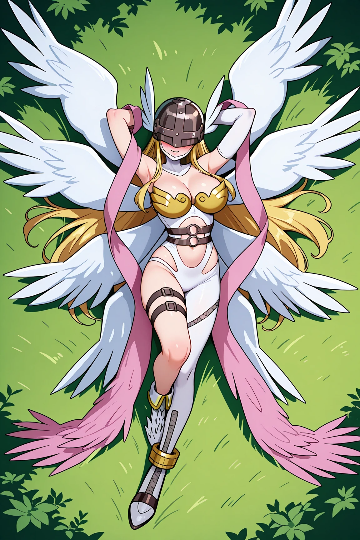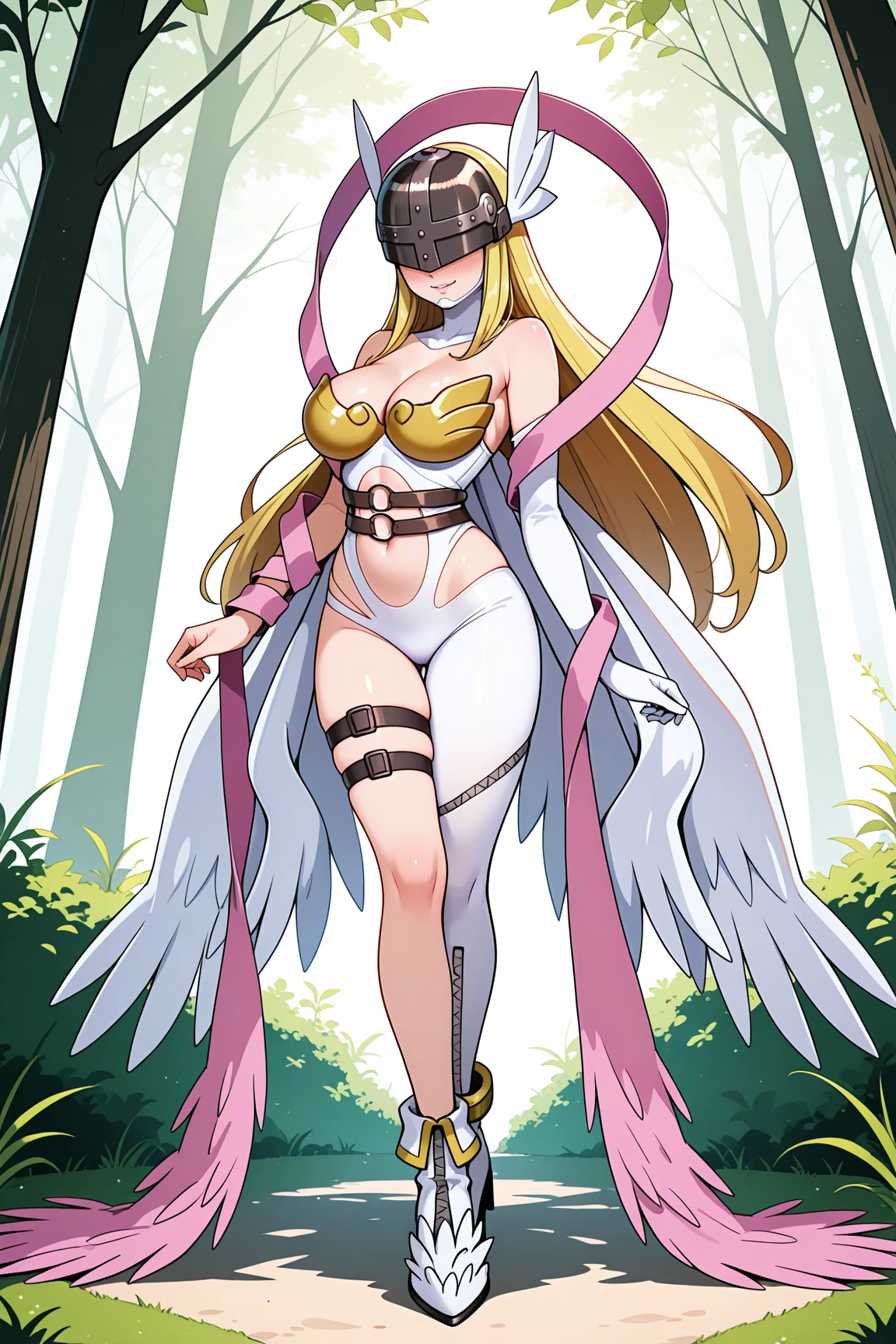 ➜ AngewomonDILXL, digimon \(creature\), helmet, no eyes, head wings, blonde hair, long hair, angel wings, multiple wings, ?????????????, pink shawl, ???? shoulders, cleavage, gold breastplate, white ????????, single elbow gloves, white elbow gloves, brown belt, thigh strap, white footwear, high heels]--|======[ 💗 My Settings: 💗 ]======|--[