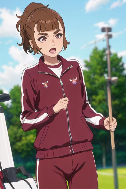 The trigger word is saotome_ichina_birdiewinggolfgirlsstory, and the recommended tags are best quality, masterpiece, highres, solo, {saotome_ichina_birdiewinggolfgirlsstory:1.15}, brown_hair, short_hair, ponytail, bangs, open_mouth, brown_eyes.