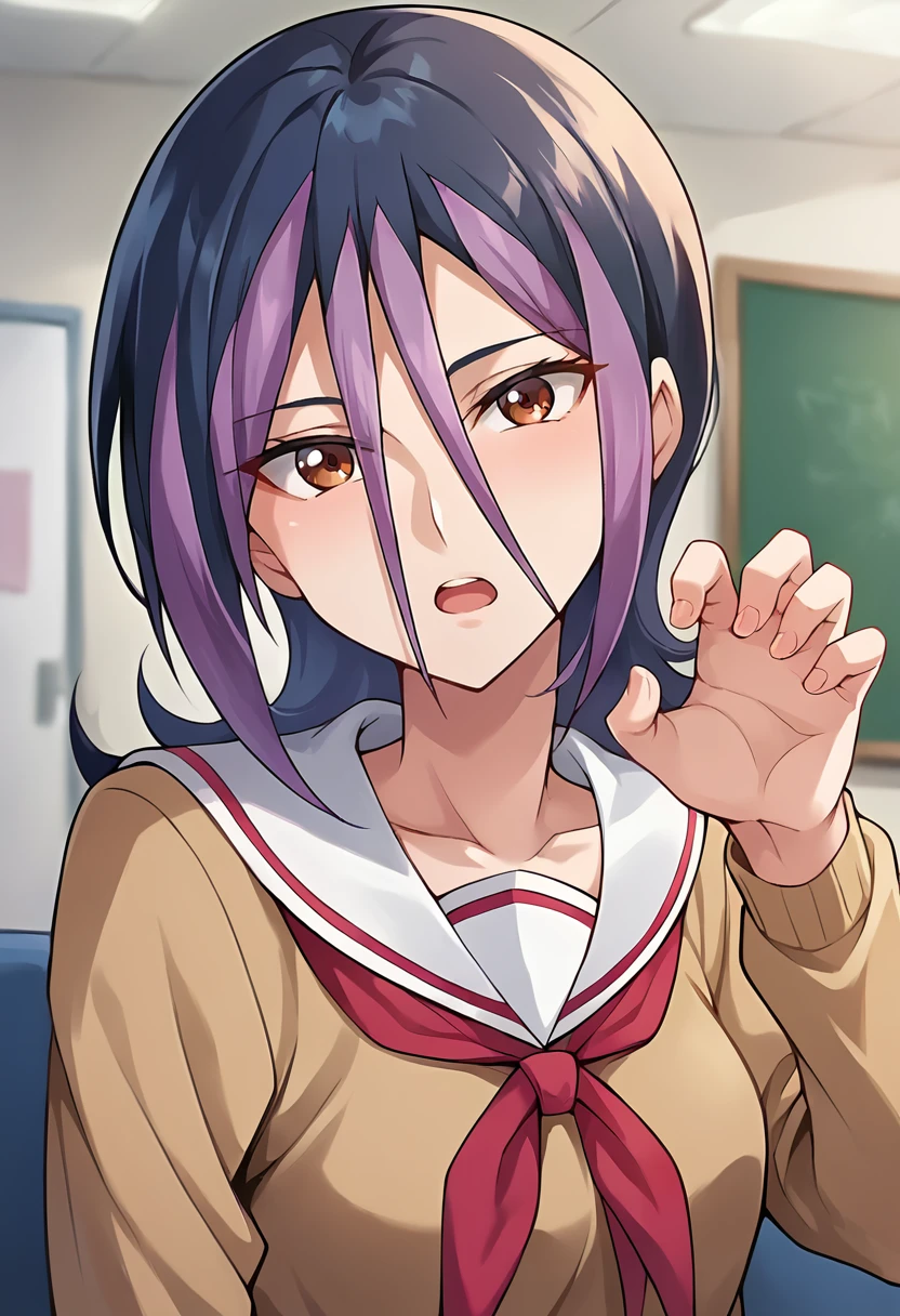 Trigger words: ct_droite, brown eyes, short hair, hair between eyes,