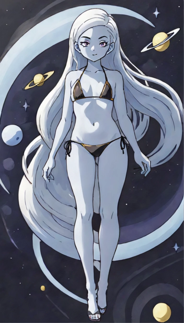 Because of her ring and wand defying gravity you will need to play around. Still .8 on weight. KsuKsuDB is the trigger, Kusu was tooccommon. Play around with Blue Skin and White Hair.