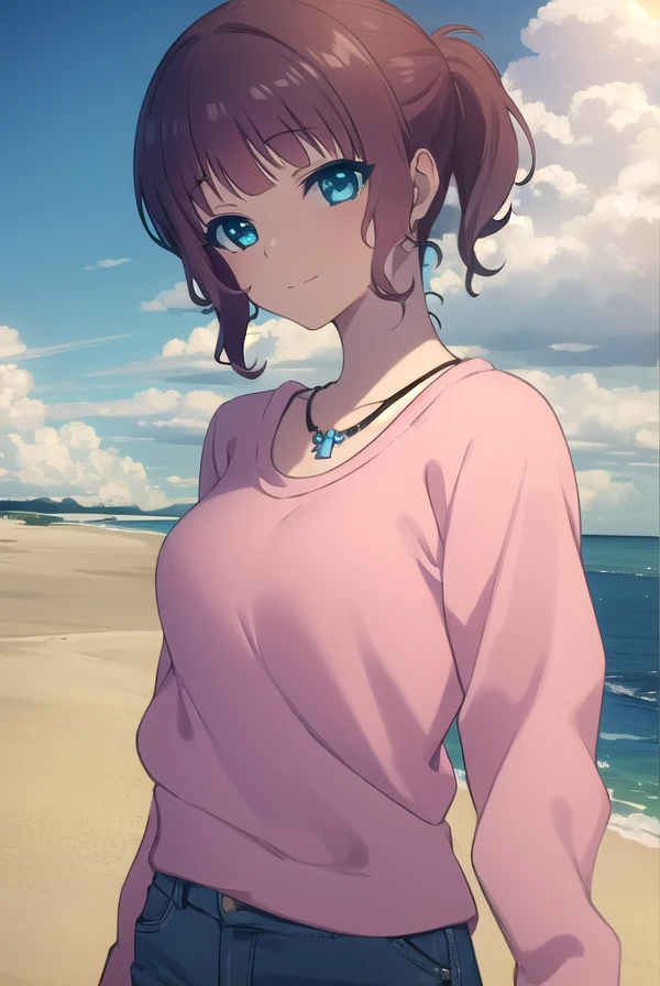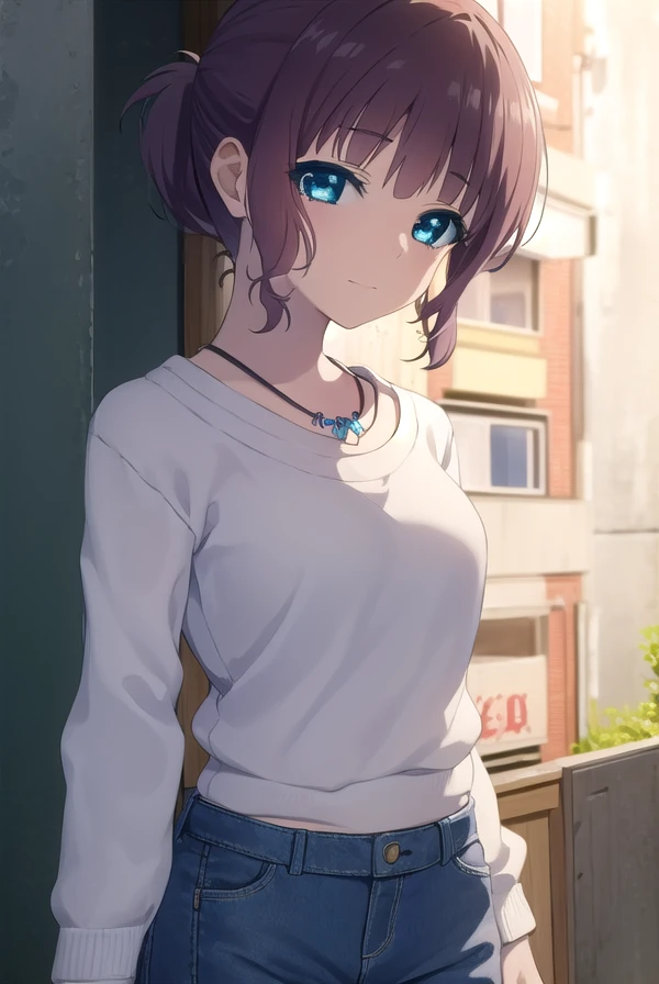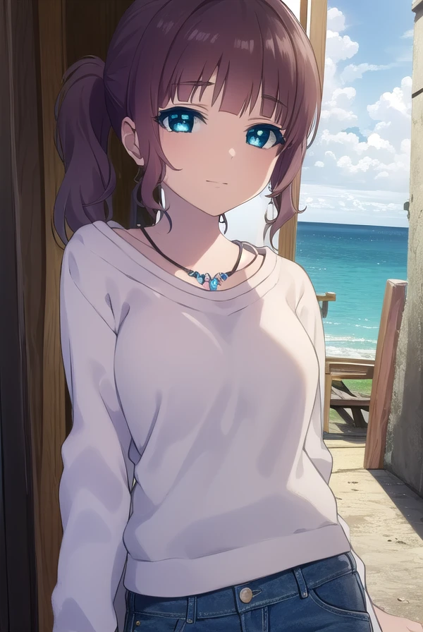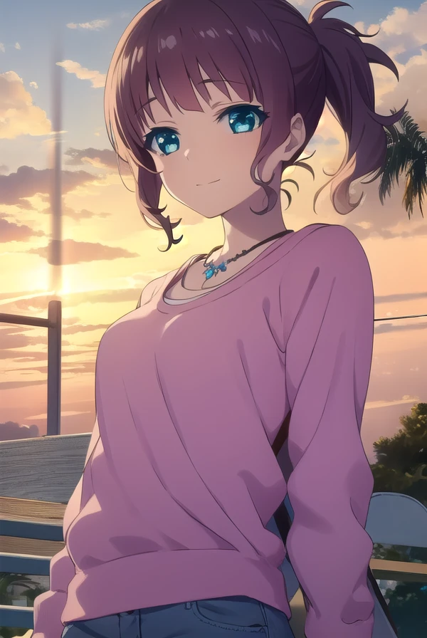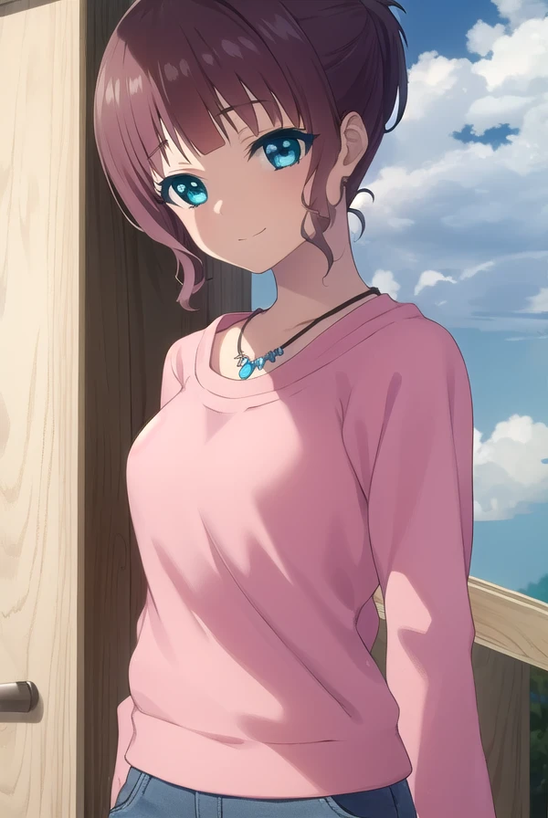 akari sakishima, short hair, blue eyes, brown hair, ponytail,