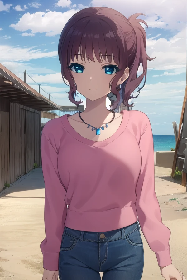 jewelry, pants, necklace, denim, collarbone, long sleeves,