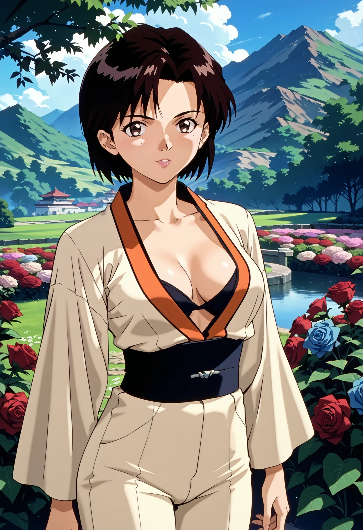 main tags: 1girl, solo, black eyes, brown eyes, short hair, black hair, brown hair, bangs, breasts, medium breasts,