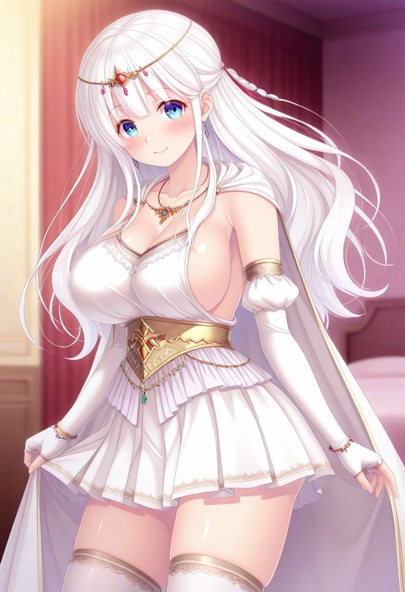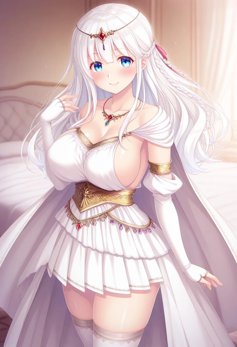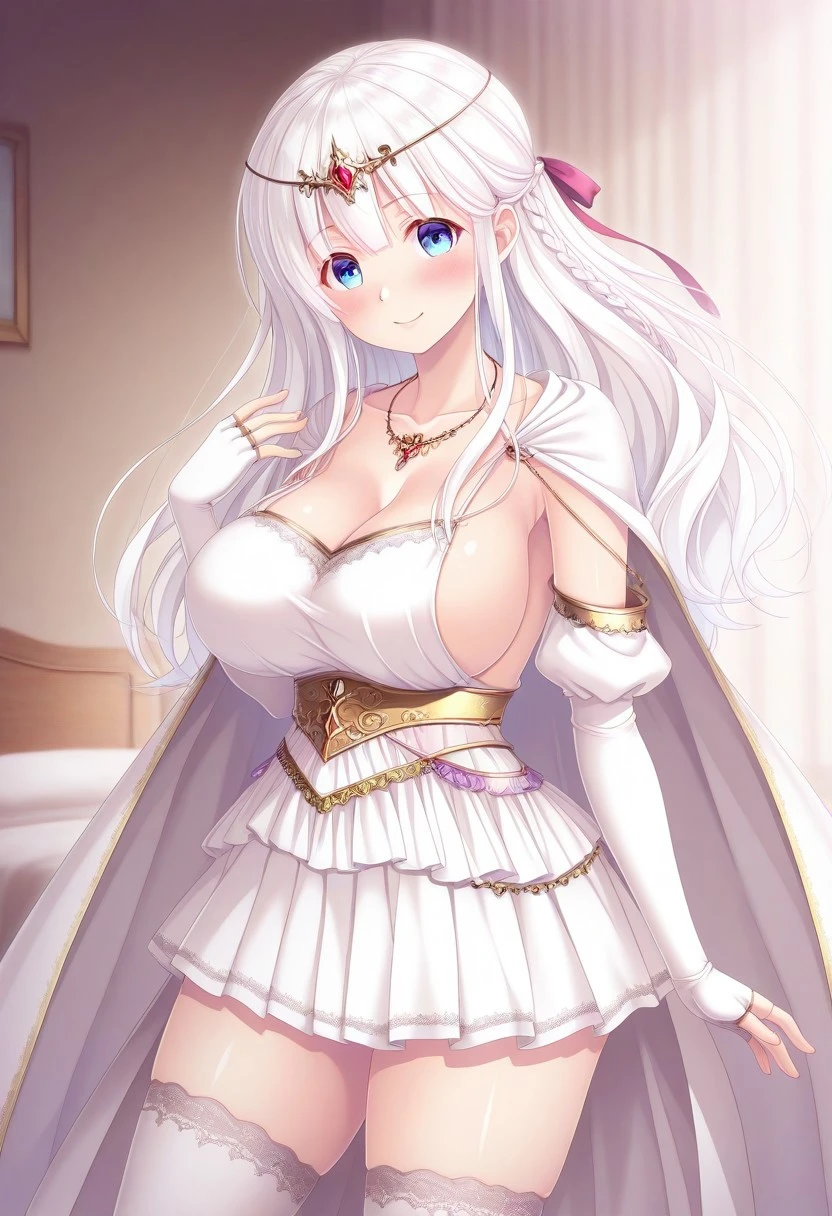 Recommend Prompt:Muriel Clark, blue eyes, white hair, long hair, braided half-up,