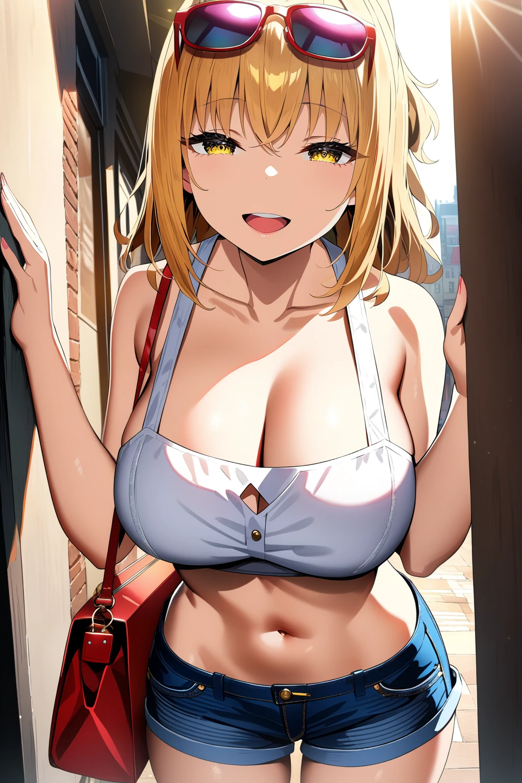 yui, yellow eyes, long hair, blonde hair, ponytail, large breasts