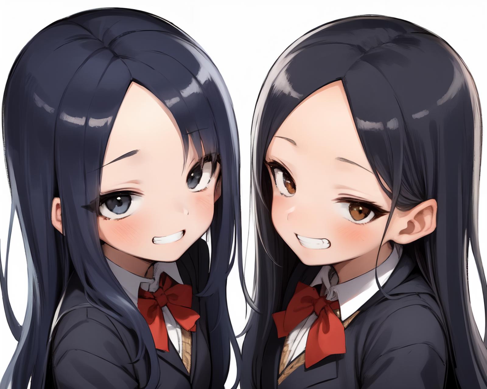 Makes images in style similar to Sōichirō Yamamoto famous for his series "Teasing Master Takagi-san" and "In the Heart of Kunoichi Tsubaki" to name a few.