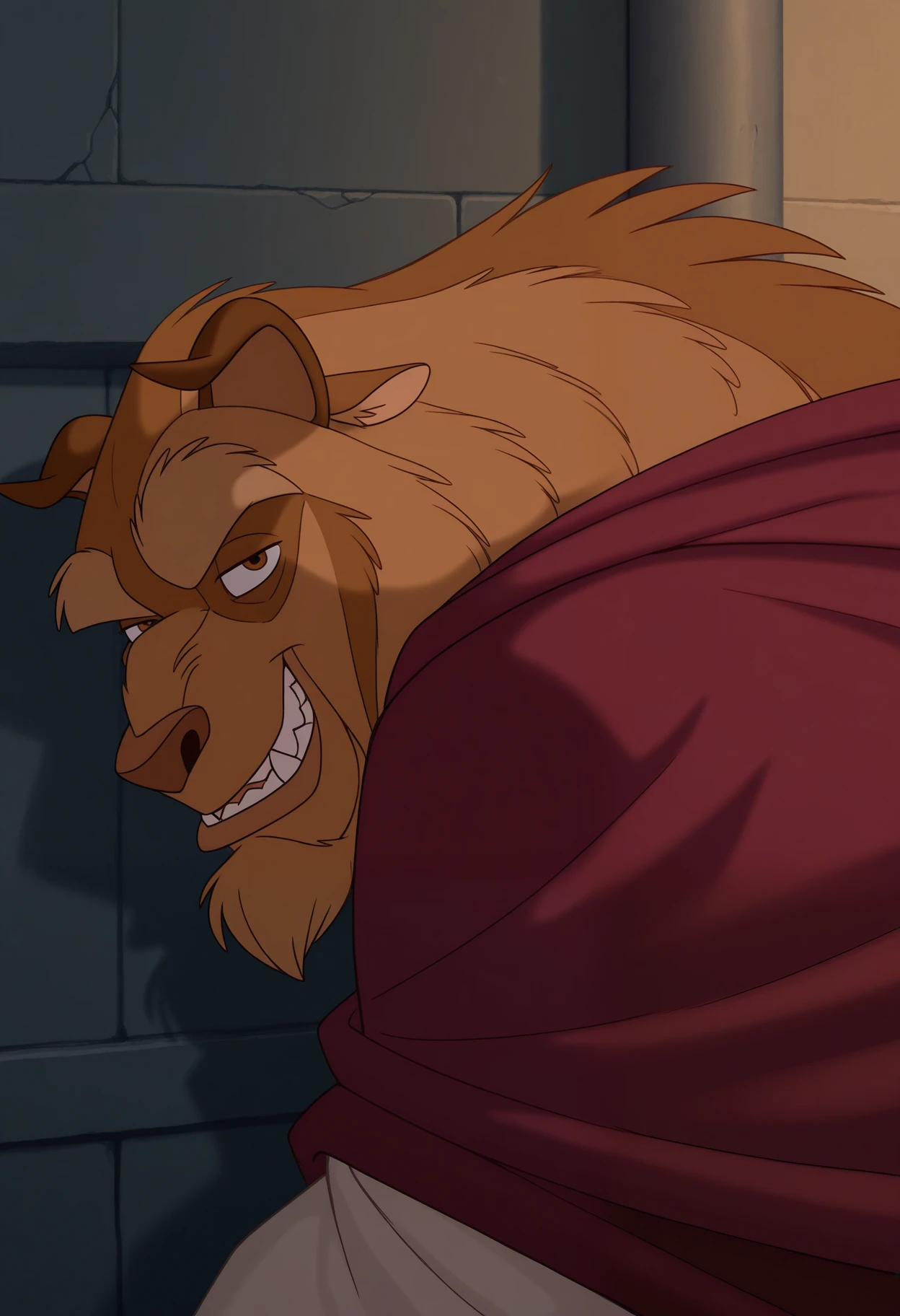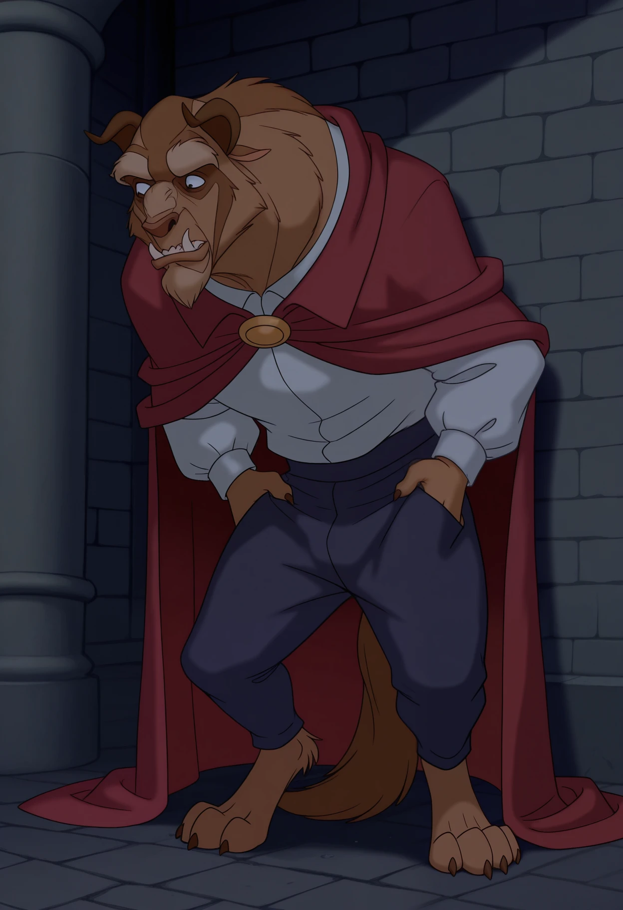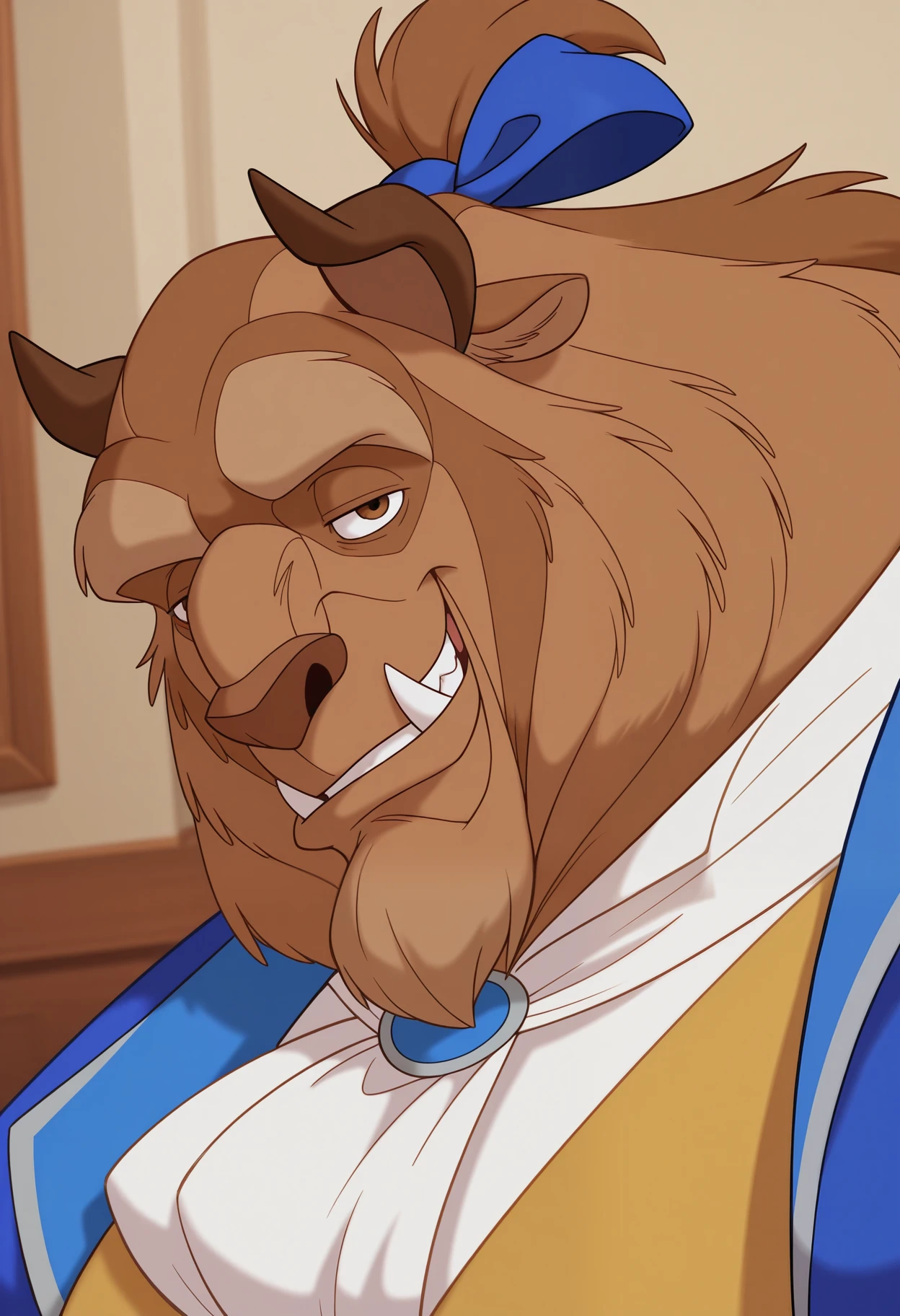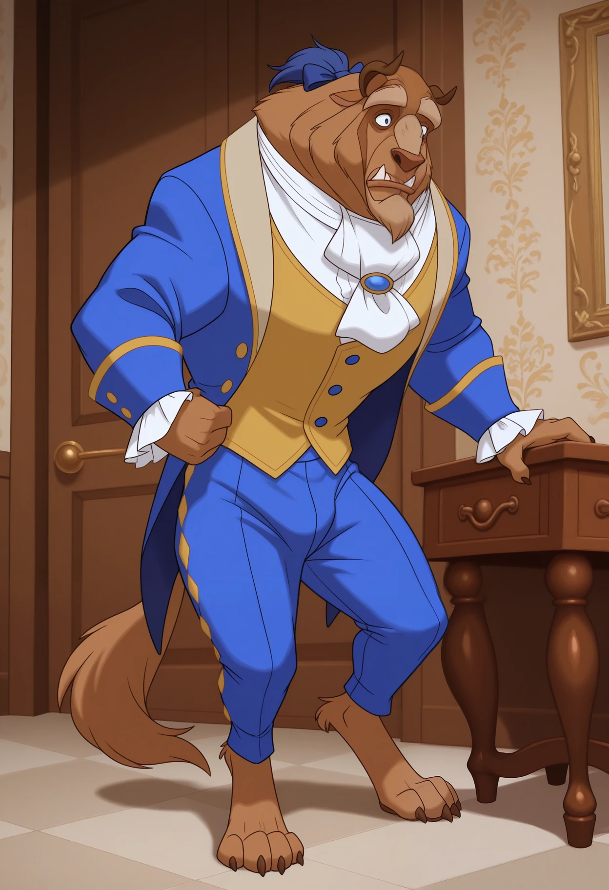 Main outfit: beast's tailor suit, beast's fancy pants, blue hair bow, white ascot, yellow vest,