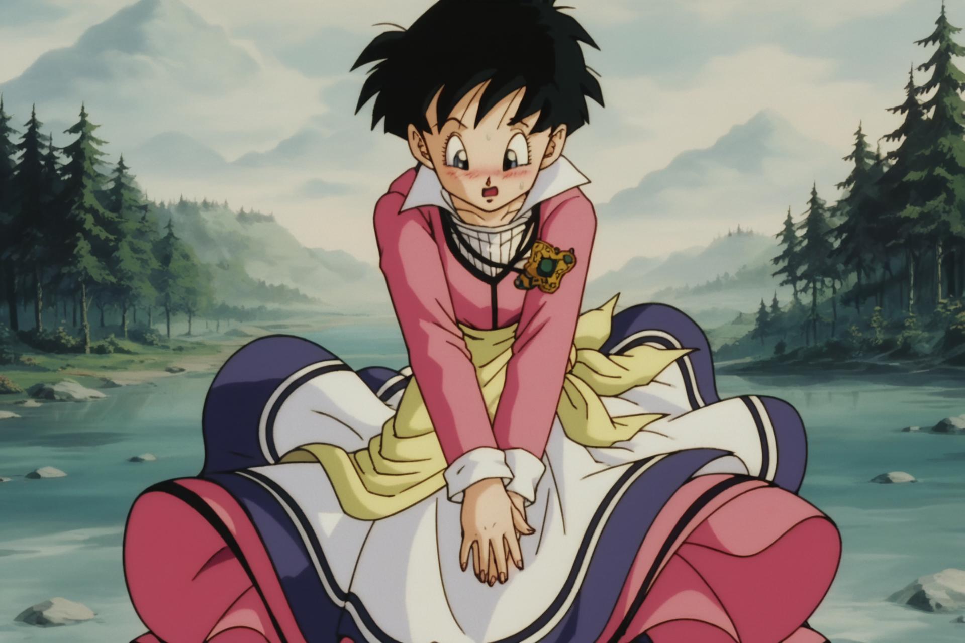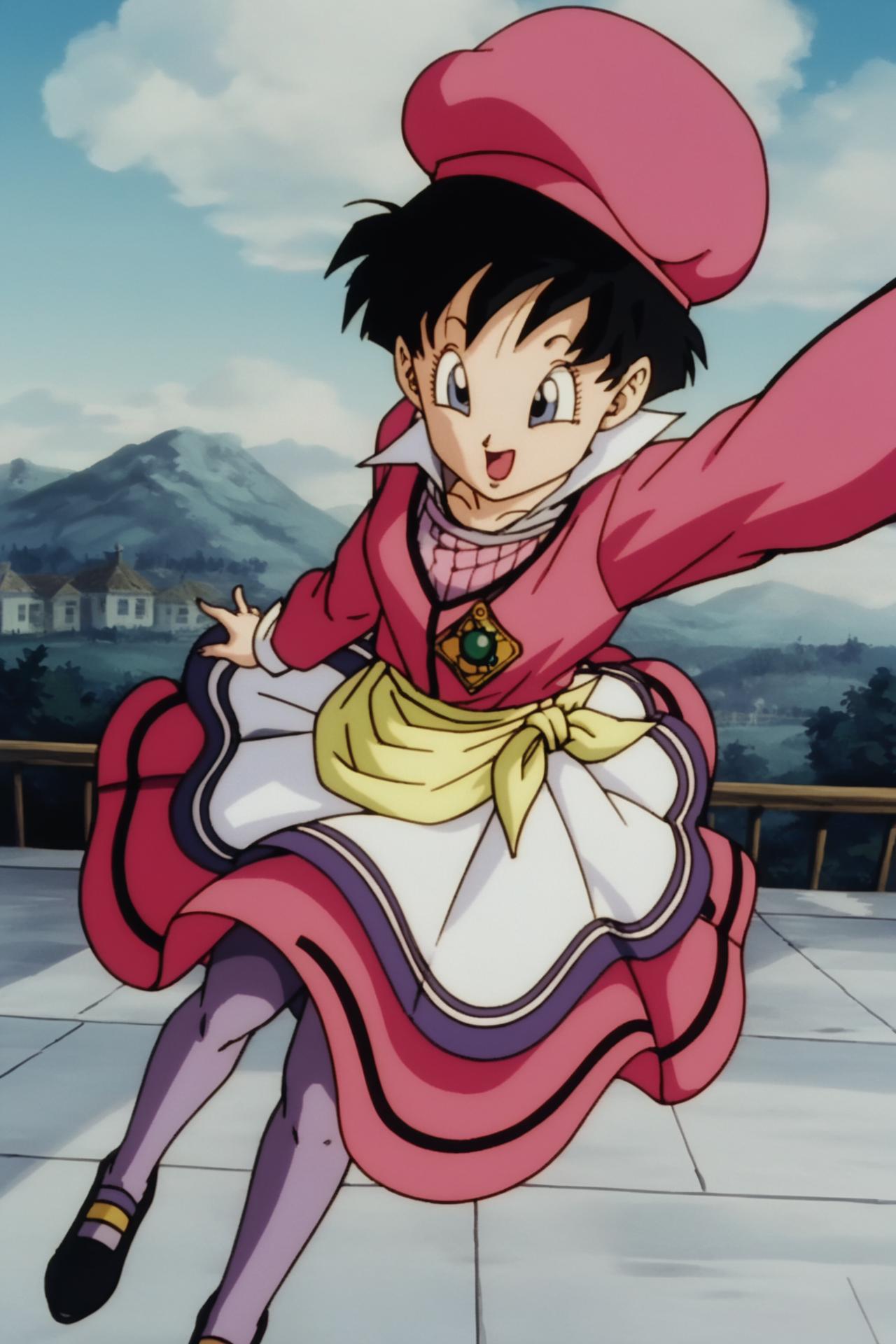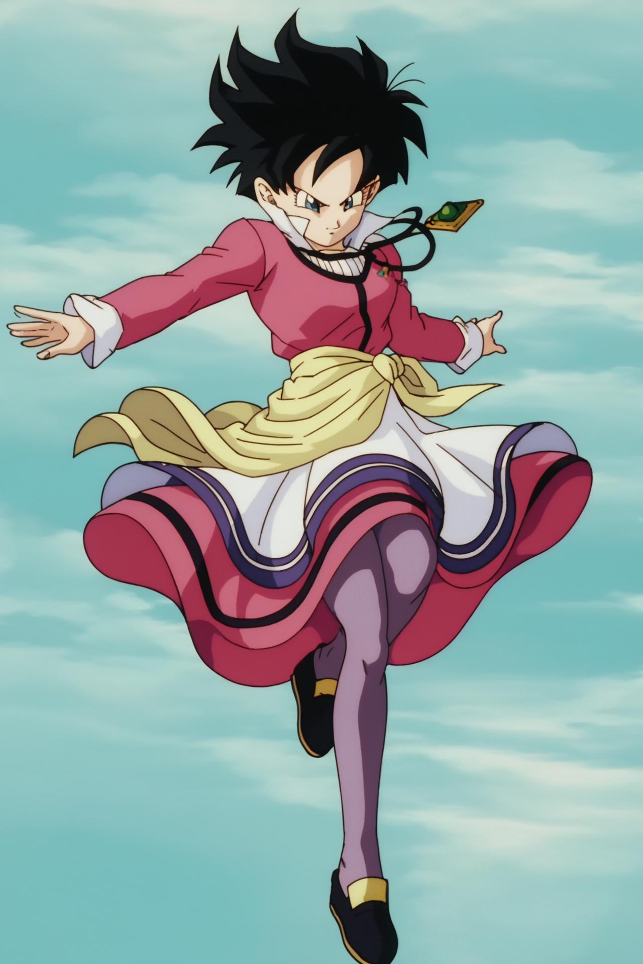 Great Saiyaman 2 : great saiyaman 2, purple bodysuit, green tunic, white belt, boots, white gloves, white_footwear, red cape, white footwear,