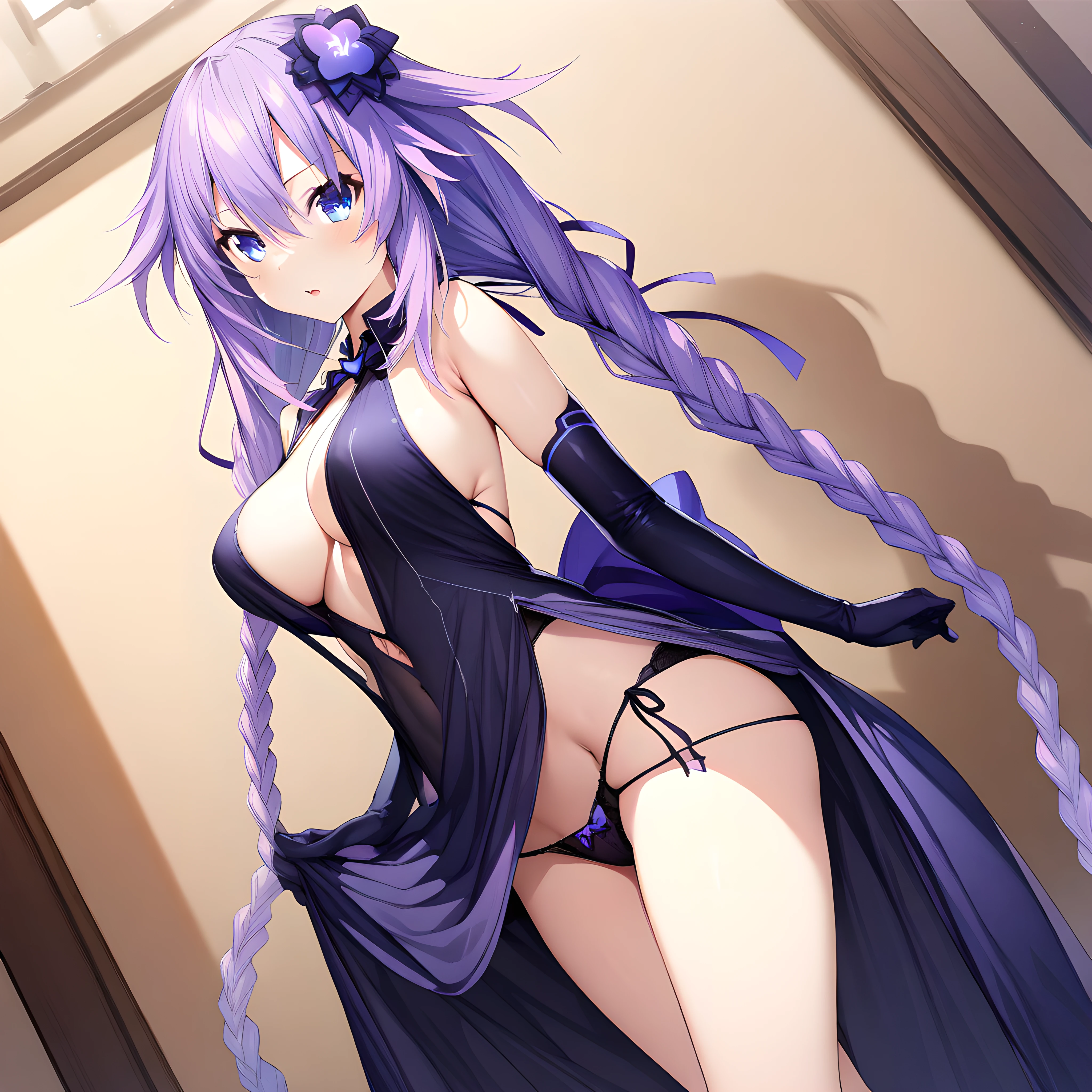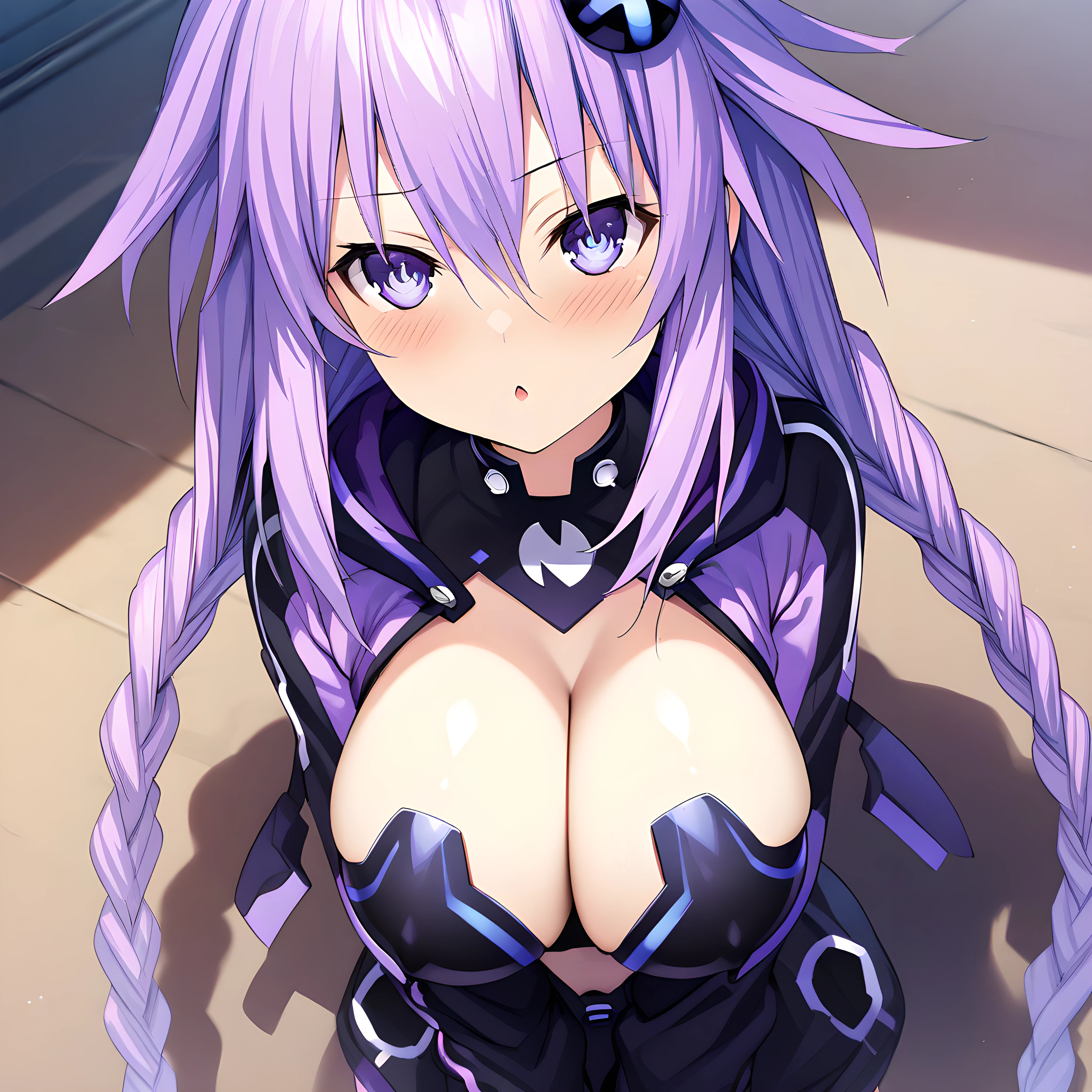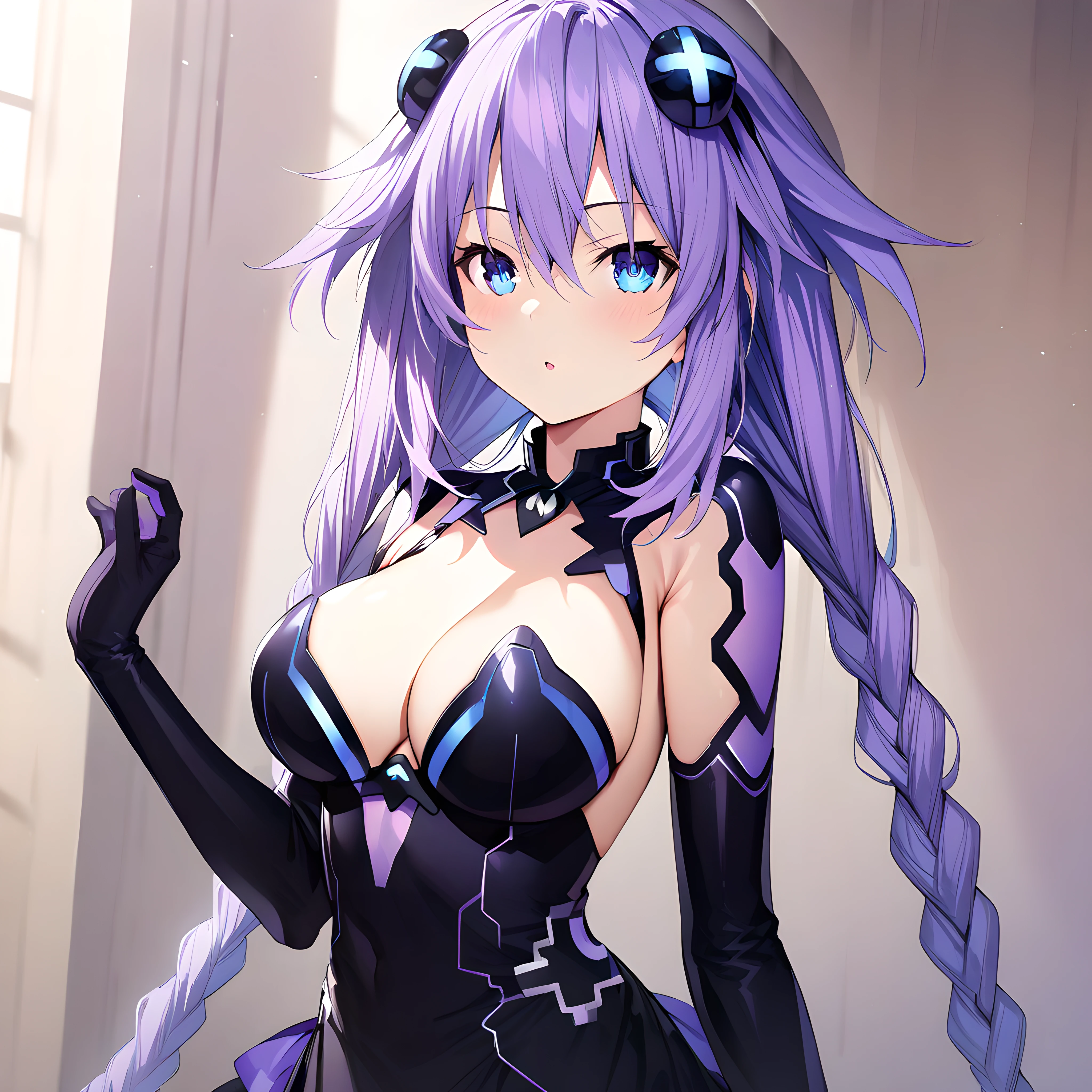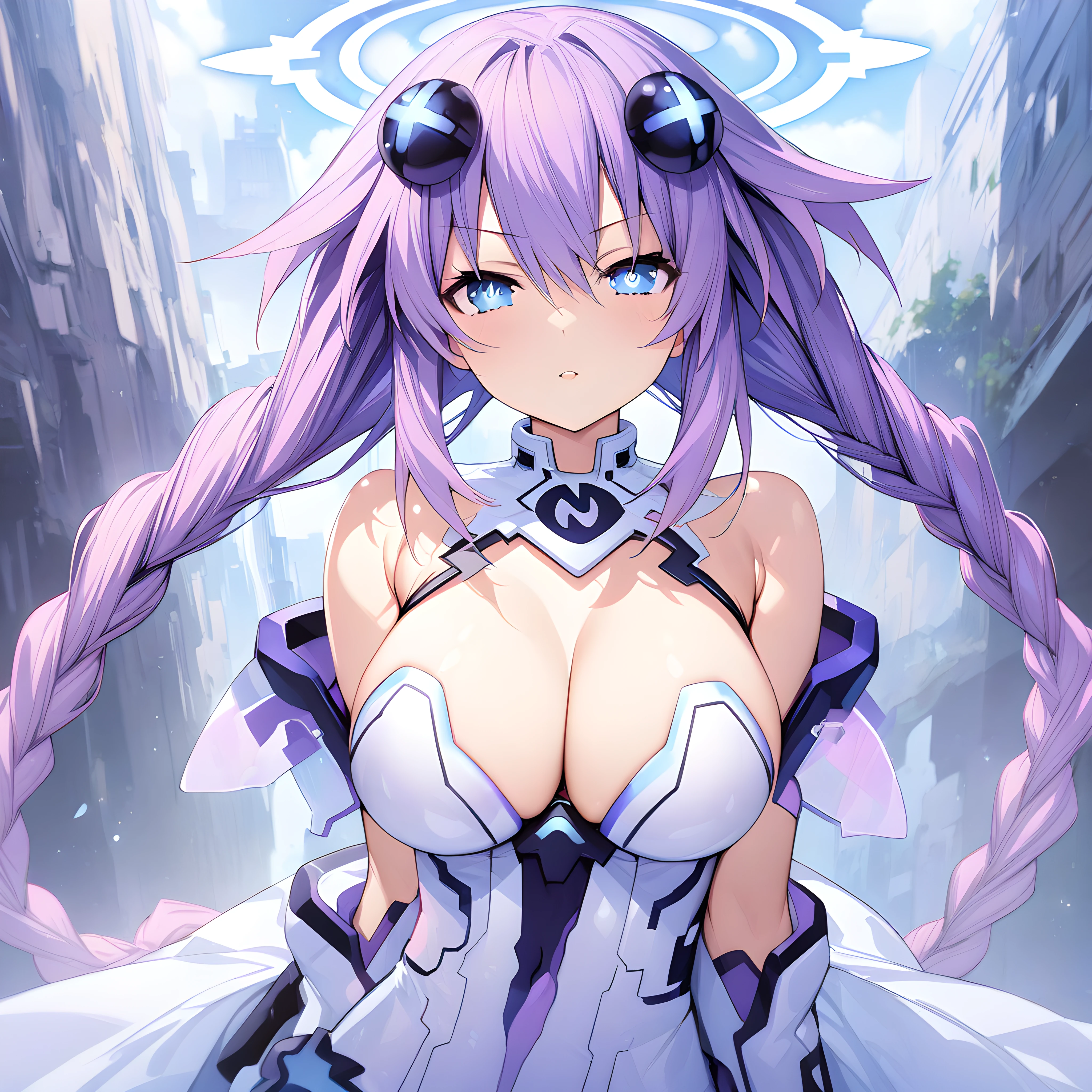 purple_heart(neptune), breasts, twin braids, long hair, braid, purple hair, symbol shaped pupil, power symbol,