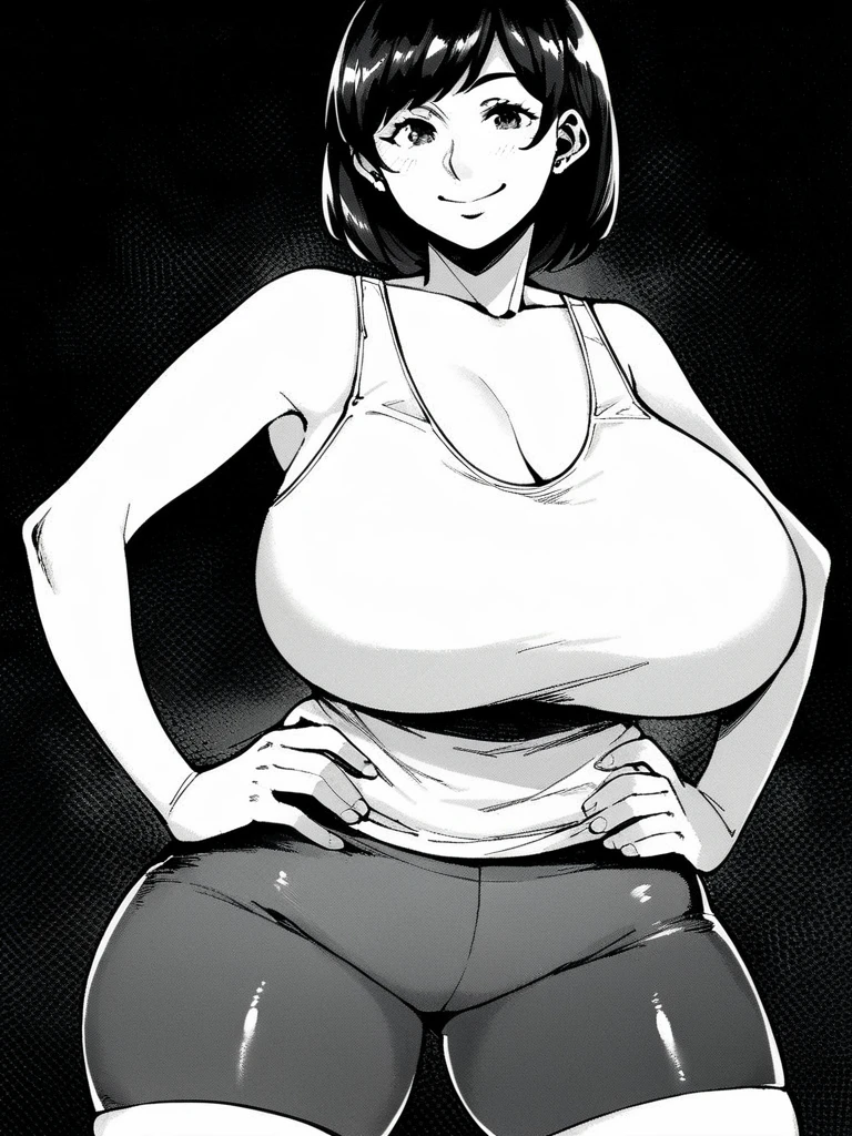 mother mc, black hair, low ponytail, hair scrunchie, huge breasts,