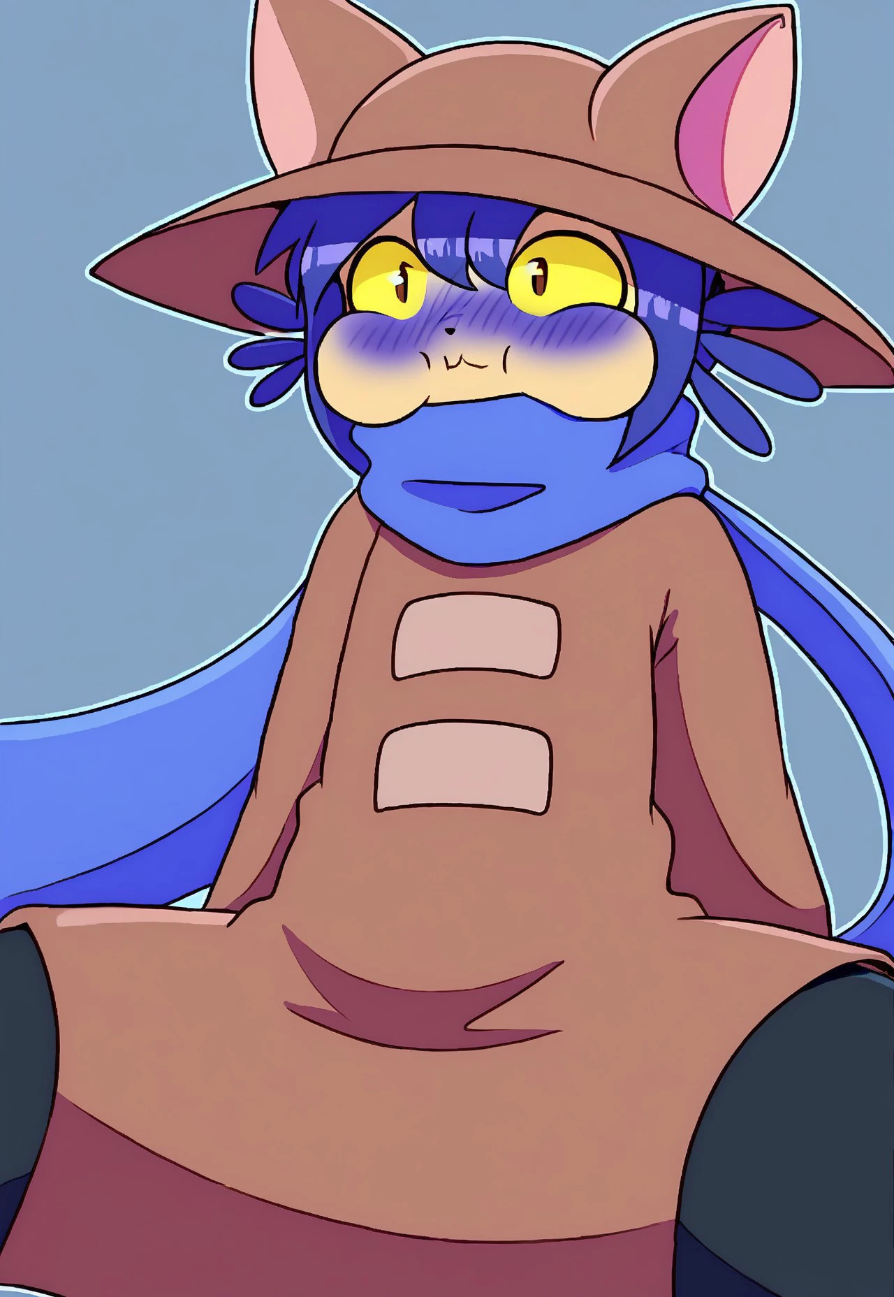 Lora for more consistency for holding breath expression with big puffy cheeks and the blush and constricted pupils.