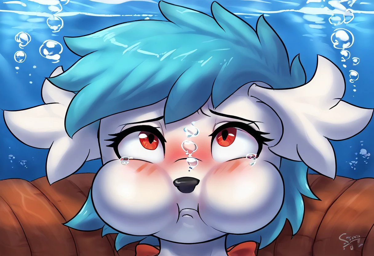 Optional prompts: constricted pupils, blush, nose blush, red blush, blue blush, wide-eyed, looking up, looking at surface, looking down, air bubble, underwater, struggling, scared, fearful,