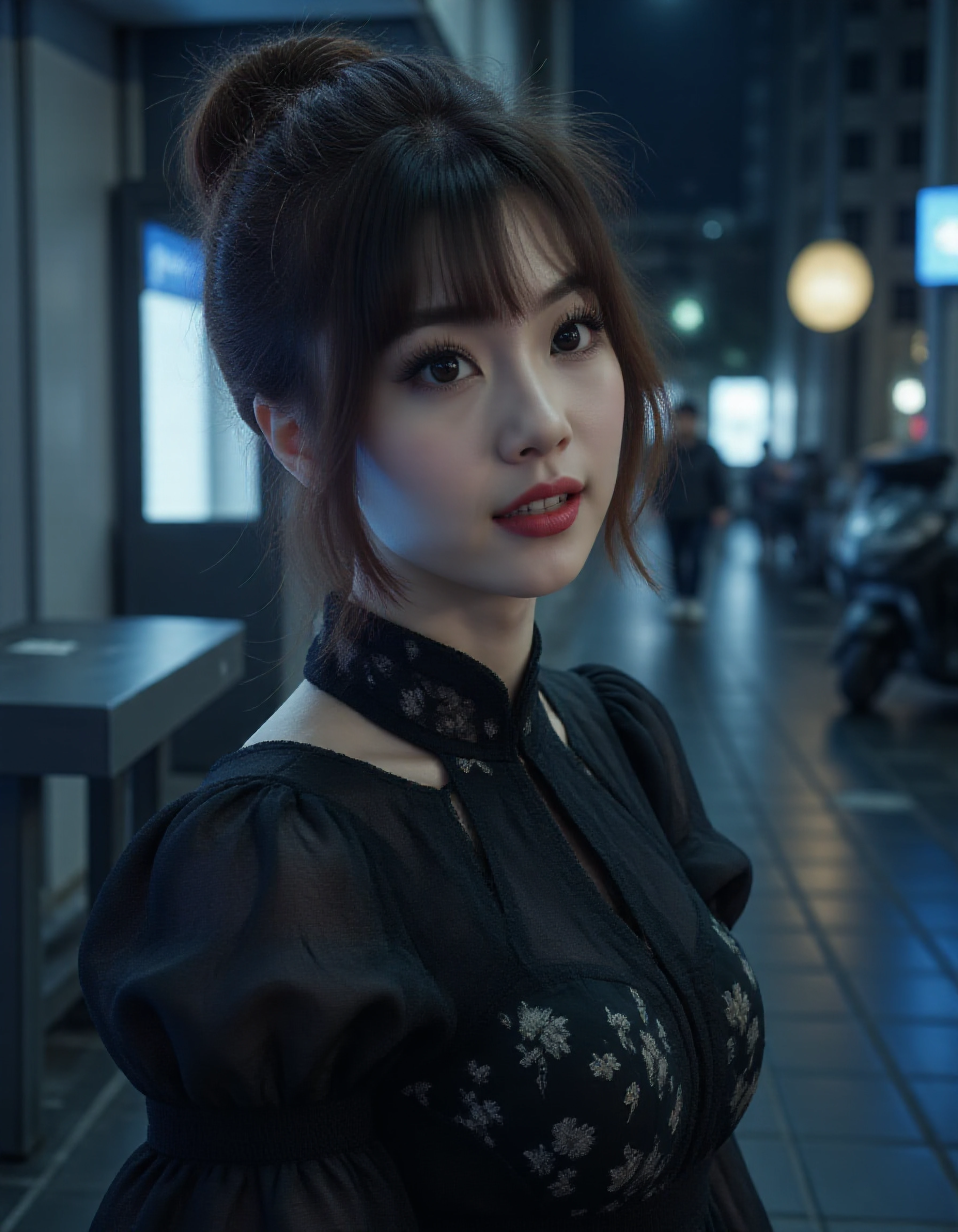 Better use with prompt like "bangs, pale skin, a beautiful woman".