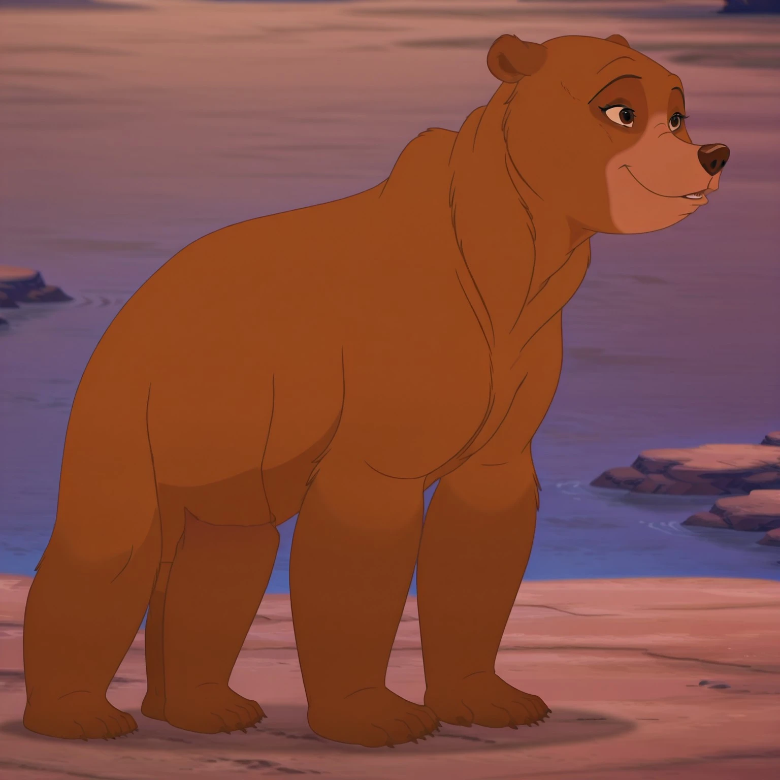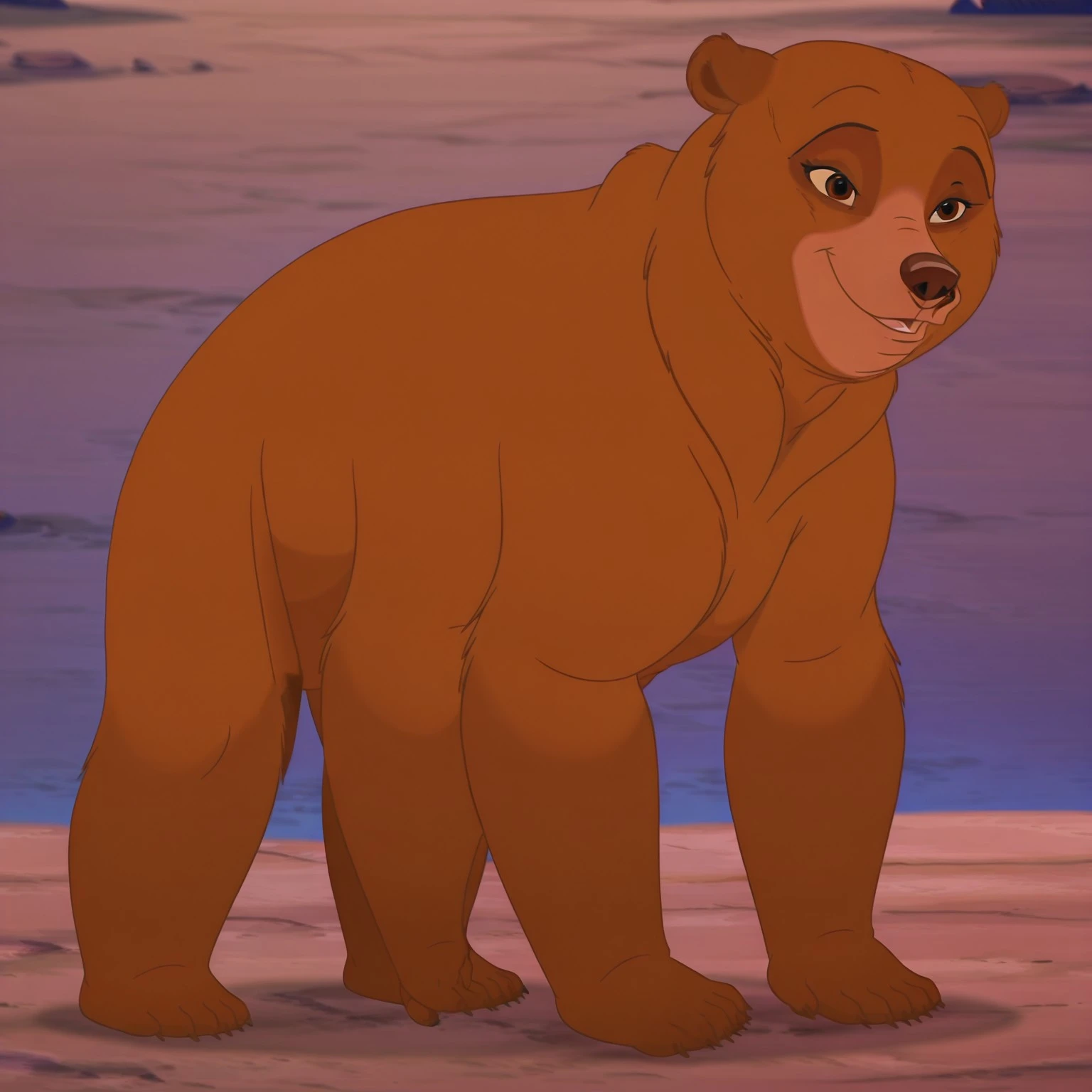Nita, solo, brown bear, brown eyes, female bear, anthropomorphic bear, paws, nita_brother_bear, disney style, 2d animation